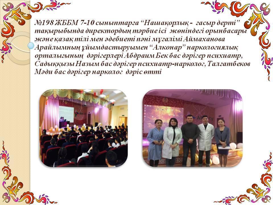 Алматы қаласы Білім басқармасының" №198 жалпы білім беретін мектебі " КММ