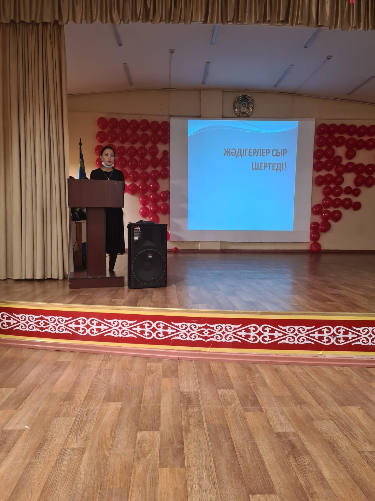» "Жәдігерлер сыр шертеді" тақырыбында 9-11 сыныптар арасындағы іс-шара.