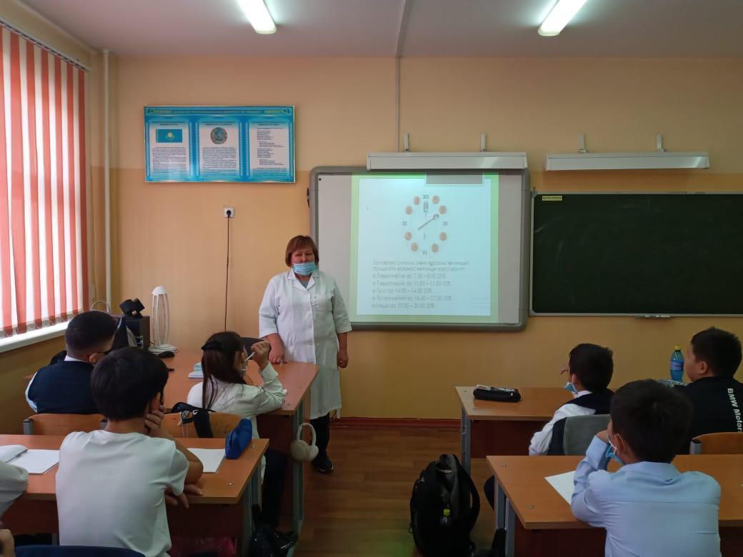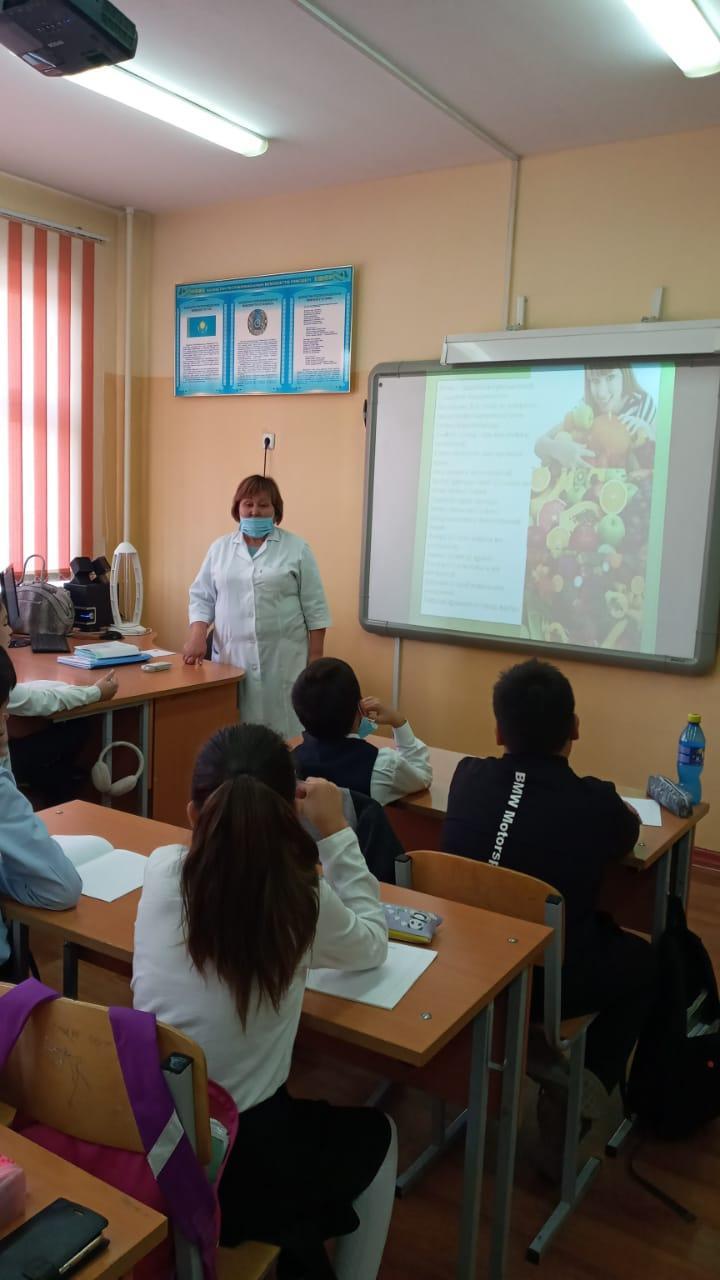 19 октябрь 2021 0 1 2 3 4 5 Салауатты өмір салтын сақтау жобасы аясында «Дрыс тамақтану-болашақ ұлт денсаулығын сақтау» мектеп мейірбикесімен кездесу сабағы