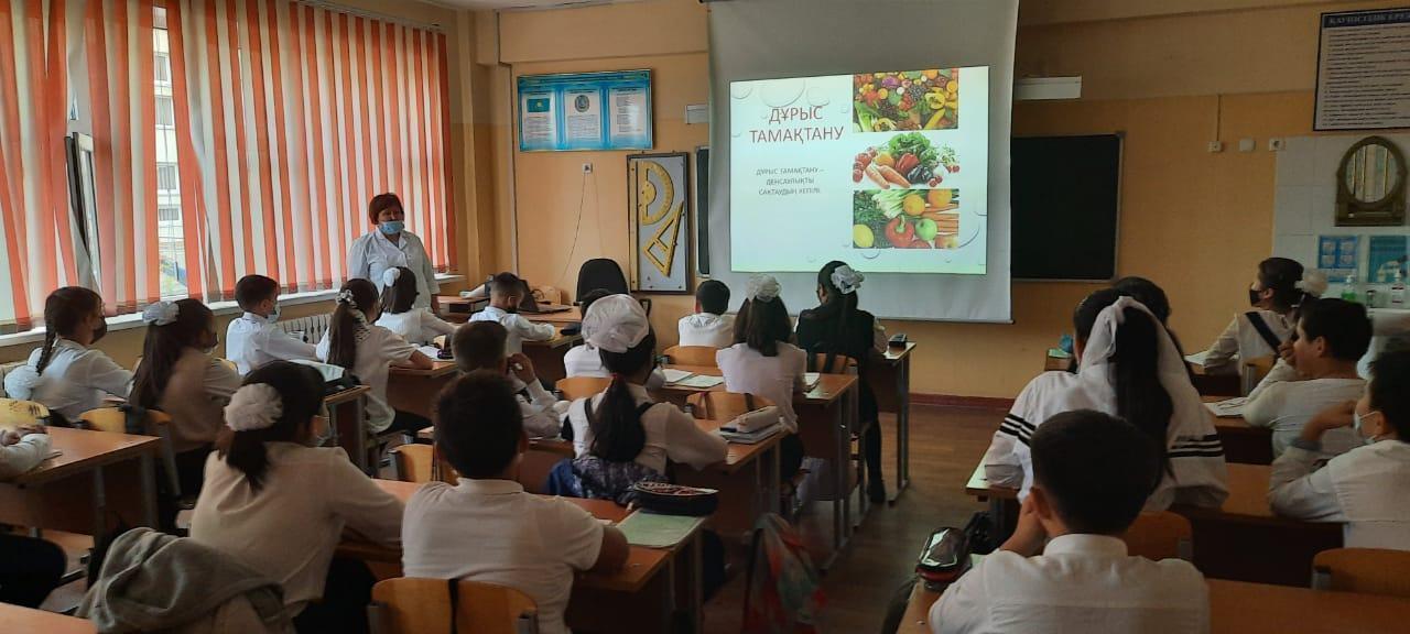 23 октябрь 2021 0 1 2 3 4 5 Дұрыс тамақтану, денсаулық кепілі. Мектеп медбикесімен дәріс сабақ. 6 "В" сыныбы