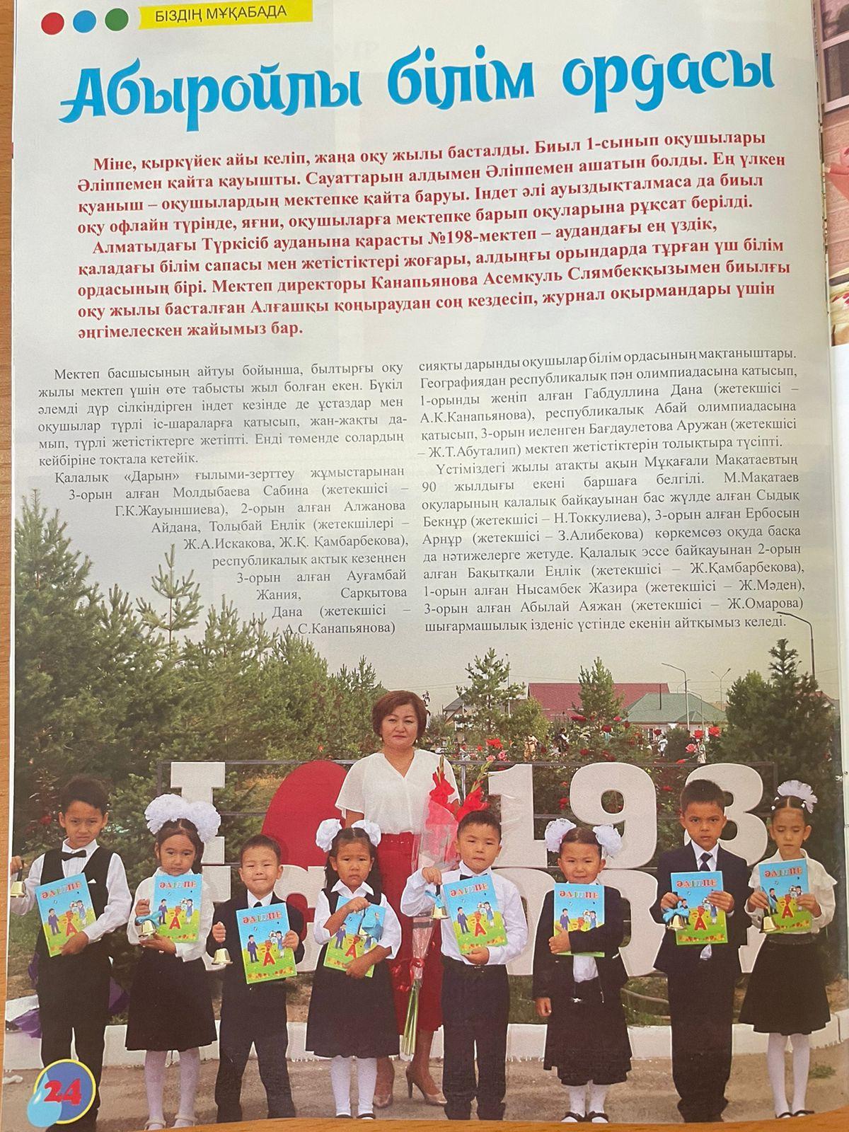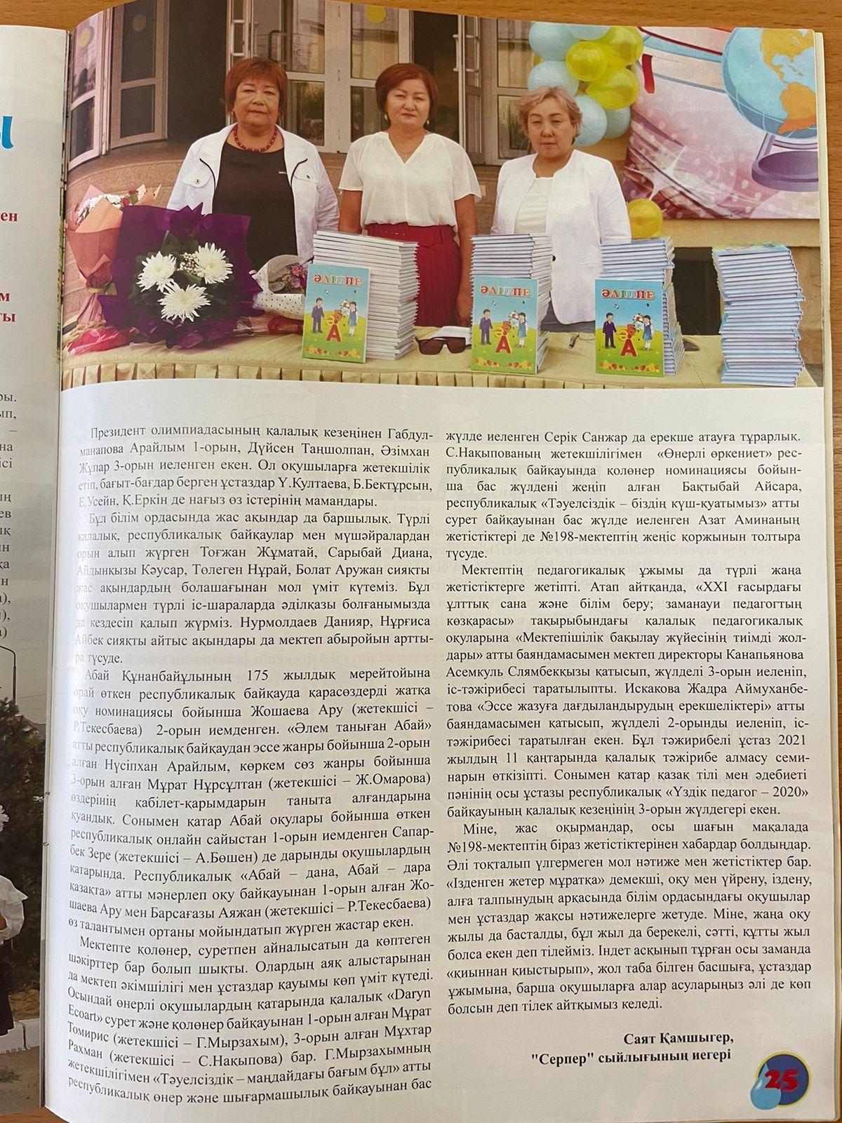 26 октябрь 2021 0 1 2 3 4 5 "Мөлдір бұлақ" Жас зиялыларға арналған танымдық журнал. №9.2021. "Абыройлы білім ордасы" атты Саят Қамшыгердің мақаласы.