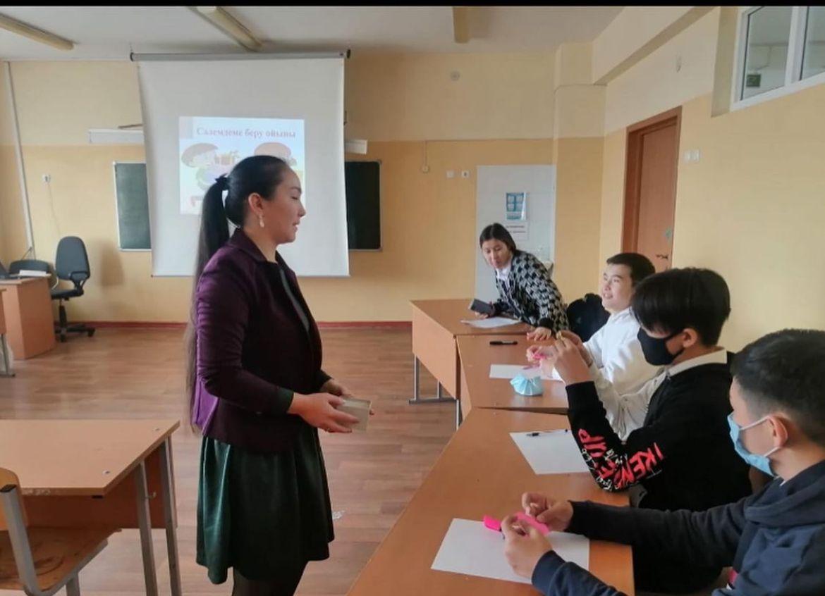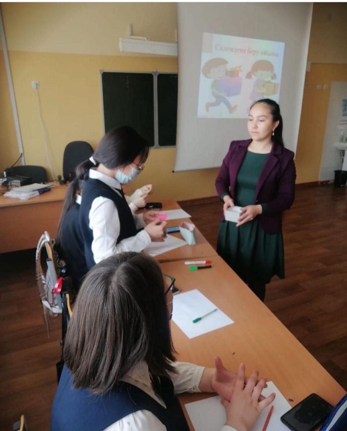 23 ноябрь 2021 0 1 2 3 4 5 "Сүйіспеншілік- адамның басты қасиеті, ақиқат - оның негізі, дұрыс әрекет- оның шынайы өмірі" тақырыбында 8 Д сыныбымен дөңгелек үстел өткізді.