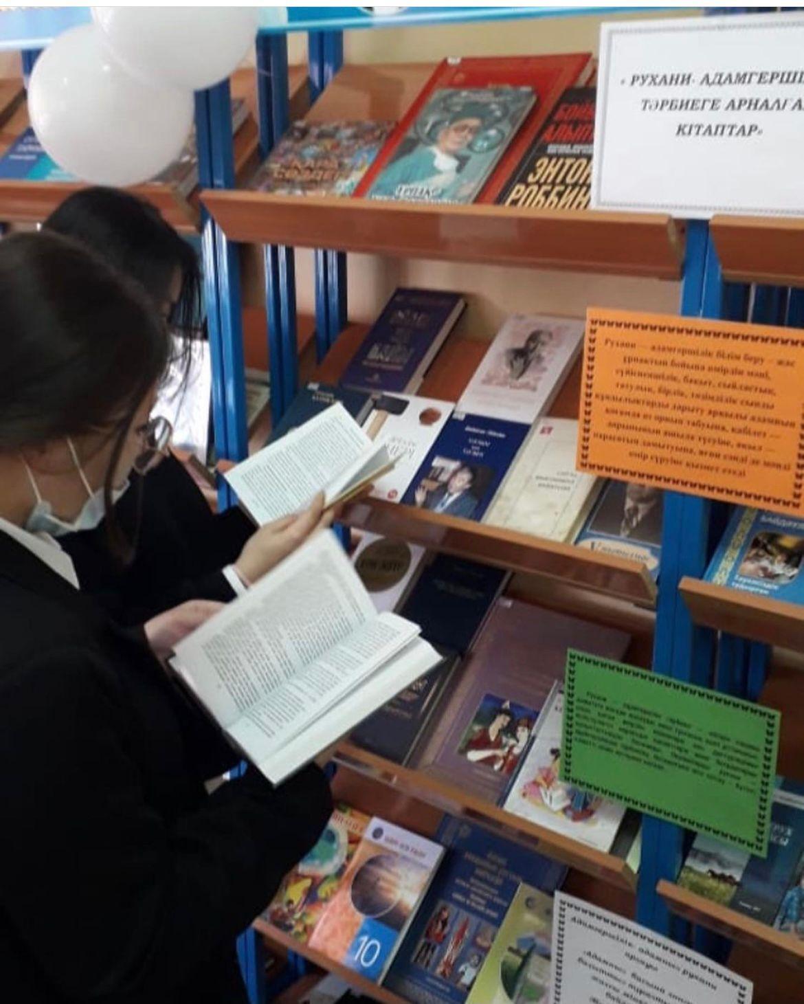 24 ноябрь 2021 0 1 2 3 4 5 Рухани- адамгершілік тәрбиеге арналған кітаптарды оқушыларға таныстыру көрмесі мектеп кітапханашыларымен өткізілді.