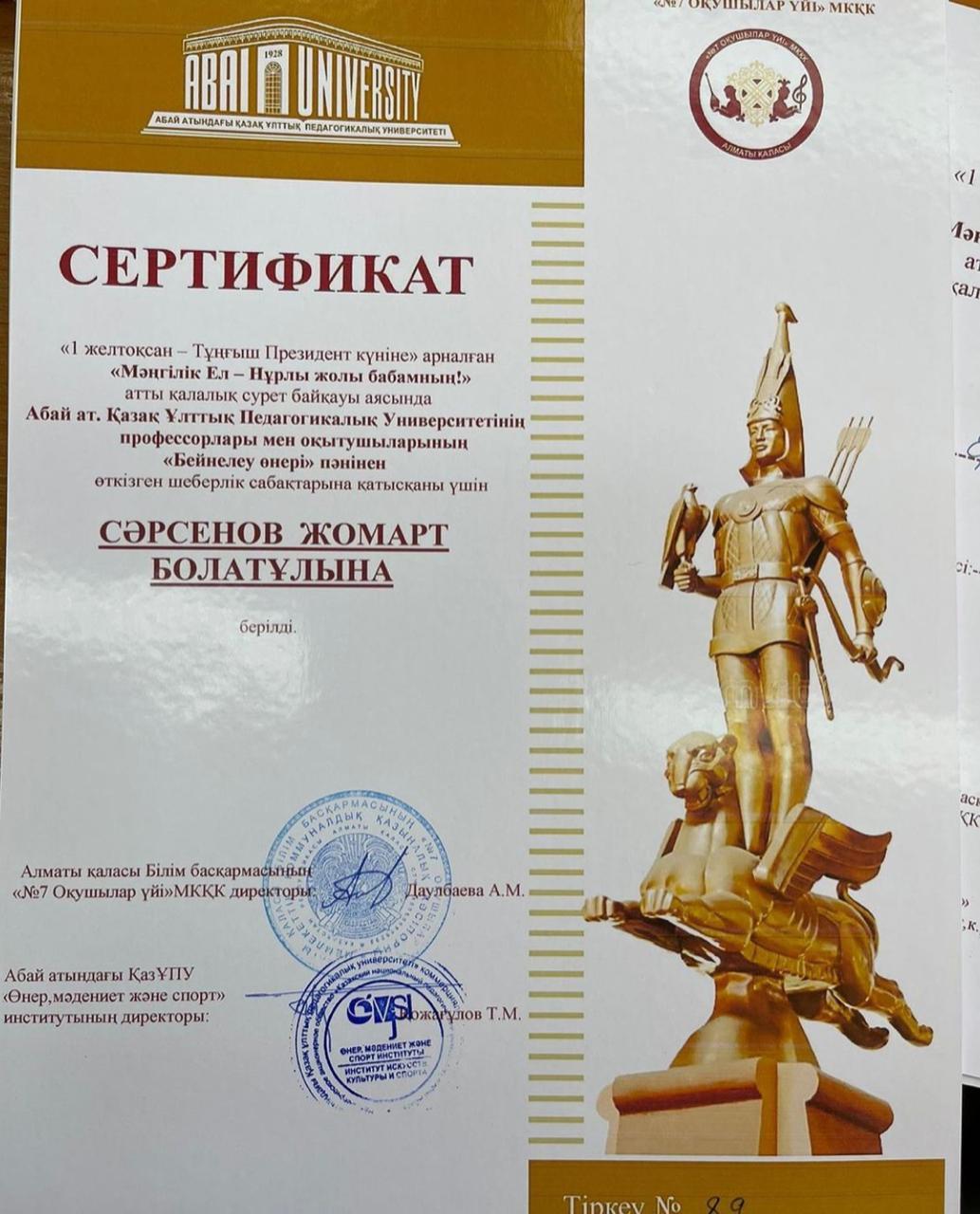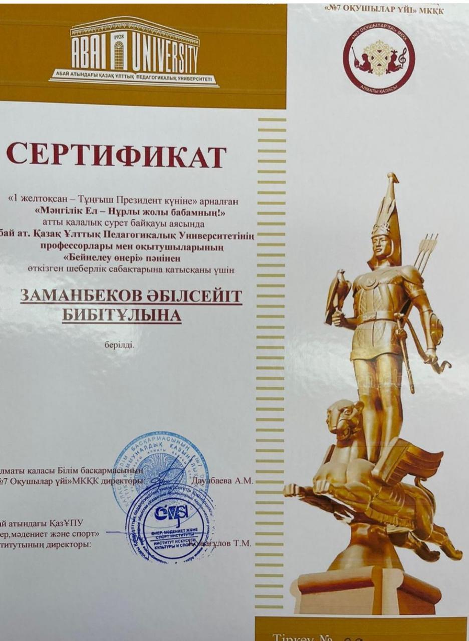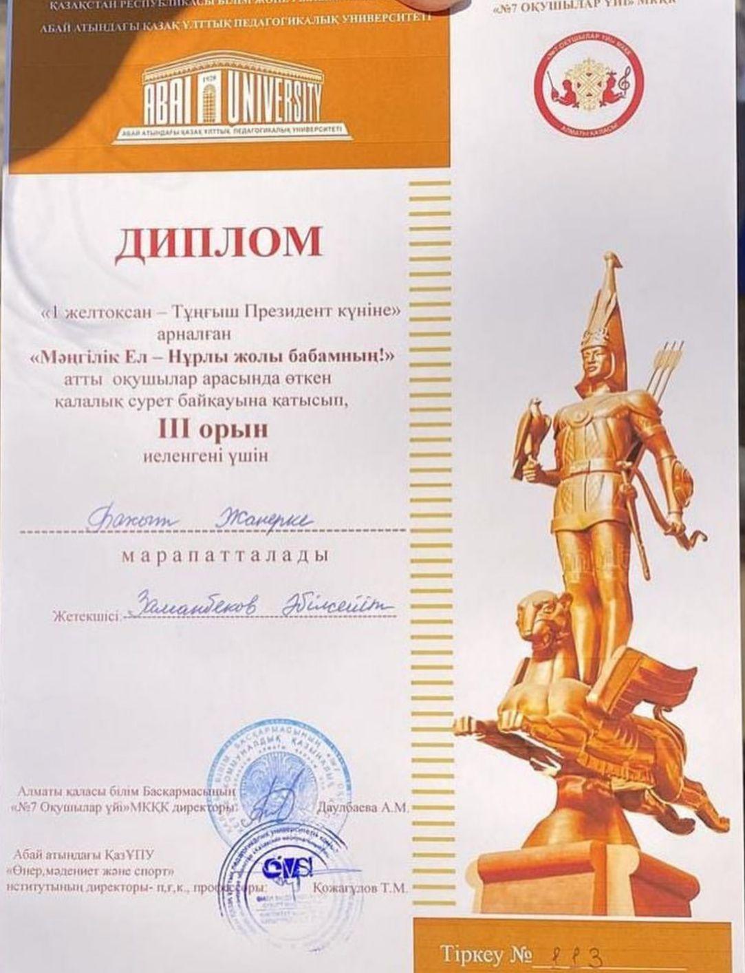 06 декабрь 2021 0 1 2 3 4 5 "1 желтоқсан-Тұңғыш Президент күніне " арналған "Мәңгілік Ел-Нұрлы жолы бабамның" атты оқушылар арасында өткен қалалық сурет байқауының жеңімпаздары.