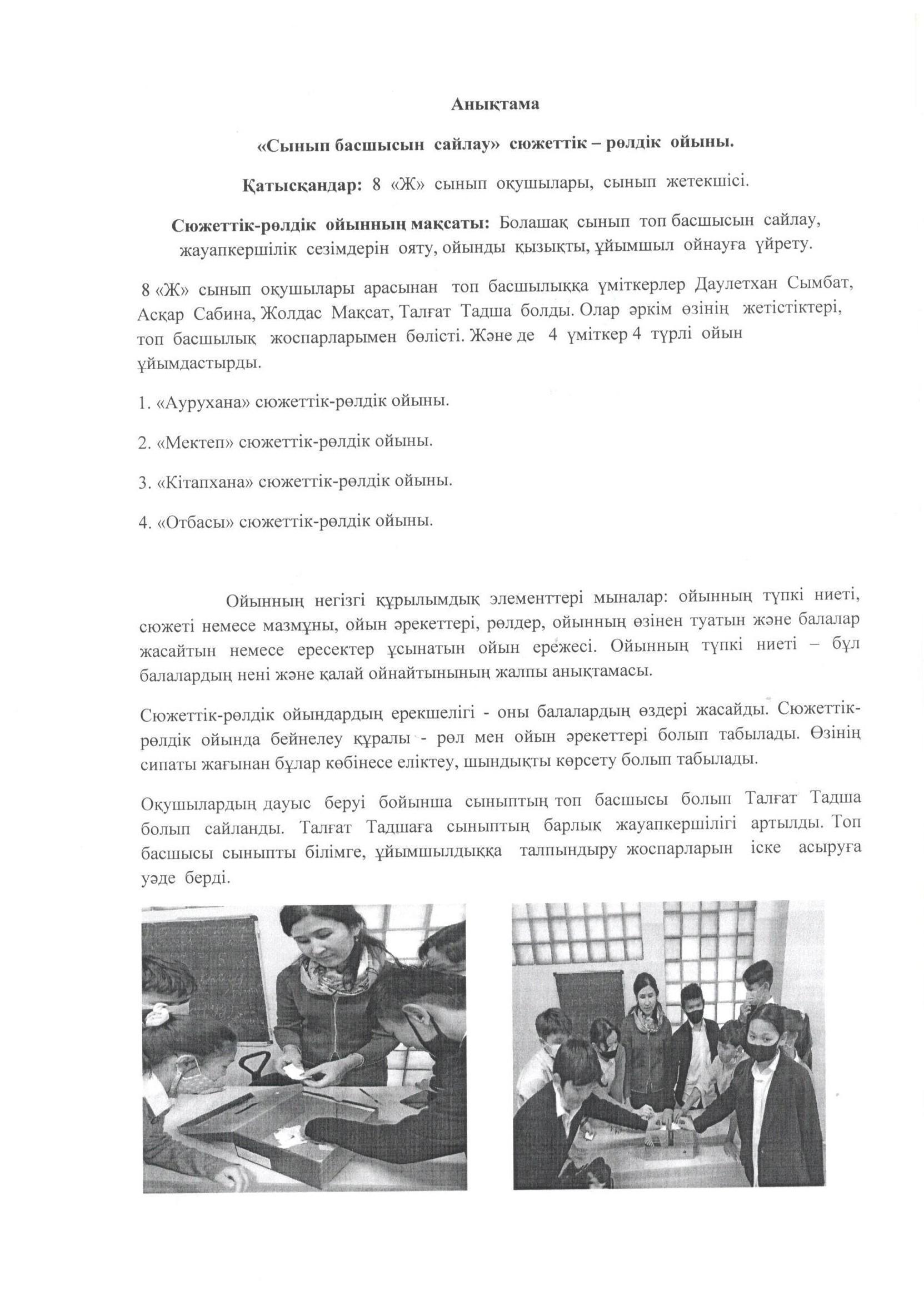» "Сынып басшысын сайлау" сюжеттік-рөлдік ойын.