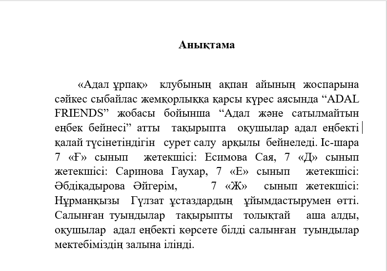 24 февраль 2022 0 1 2 3 4 5 "Адал ұрпақ" клубының ақпан айындағы есебі. Адал еңбек бейнесі сурет байқауы.