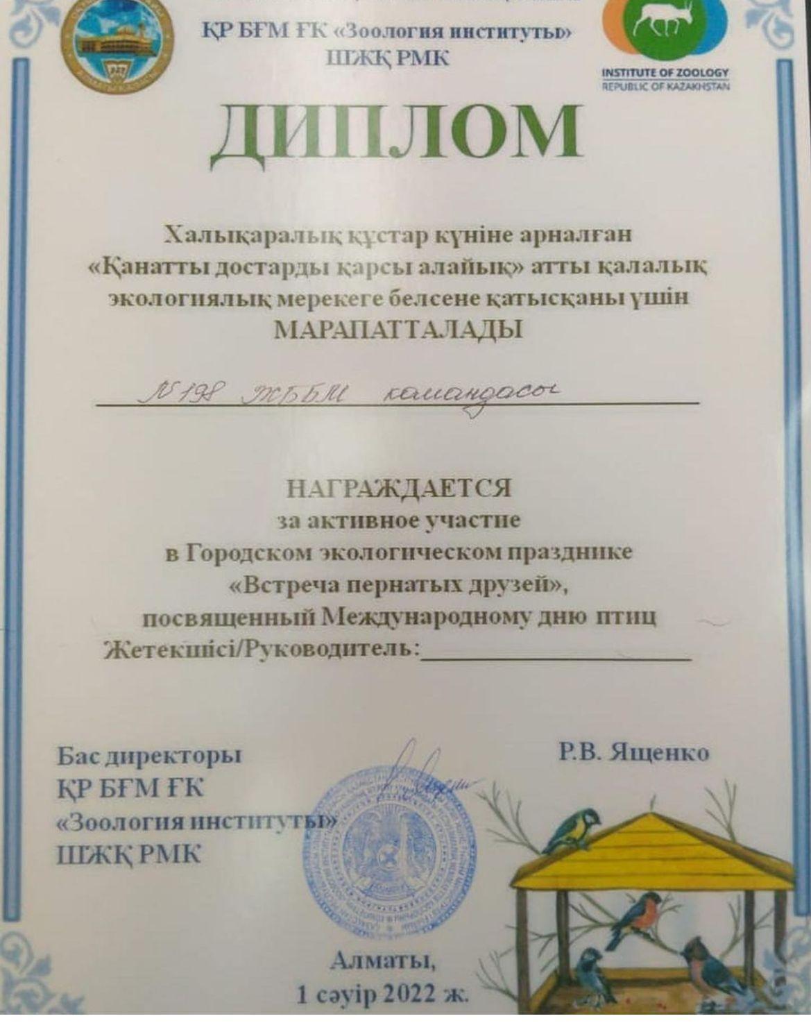 04 апрель 2022 0 1 2 3 4 5 "Қанатты құстарды қарсы алайық" атты қалалық экологиялық мерекеге мектептің жас экологтары белсене атсалысып қайтты.