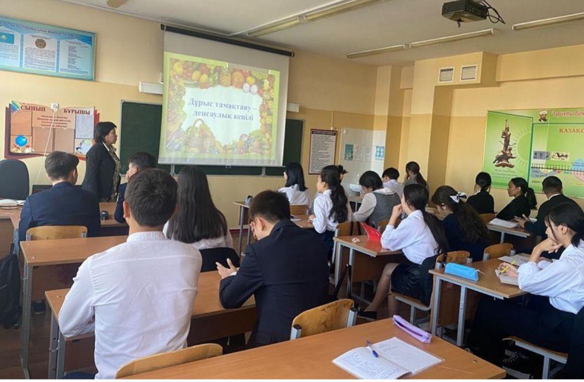 12 октябрь 2022 0 1 2 3 4 5 "Дұрыс тамақтану, ойынқұмарлықтан арылу, зиянды тағамдардан бас тарту!" атты тақырыпта сынып сағаттары.