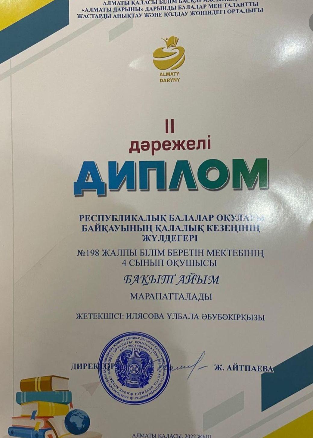 21 октябрь 2022 0 1 2 3 4 5 Республикалық балалар оқулары байқауының қалалық кезеңінде мектебіміздің 4 сынып оқушысы Бақыт Айым 2 орын иеленді. Құттықтаймыз!!!💐💐💐