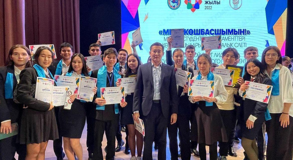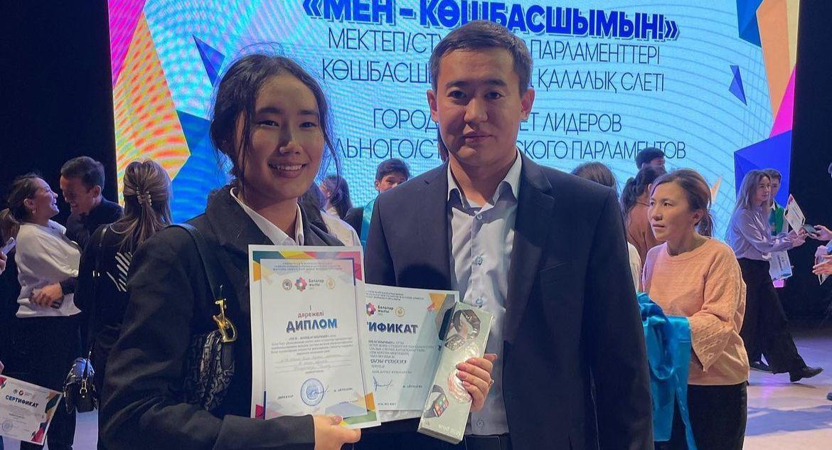 14 ноябрь 2022 0 1 2 3 4 5 “Мен көшбасшымын” атты студенттер мен мектеп көшбасшылары арасында өткен қалалық слетте мектебіміздің президенті Жомартқызы Гүлназ 1 орын иегері атанды. Құттықтаймыз!!!