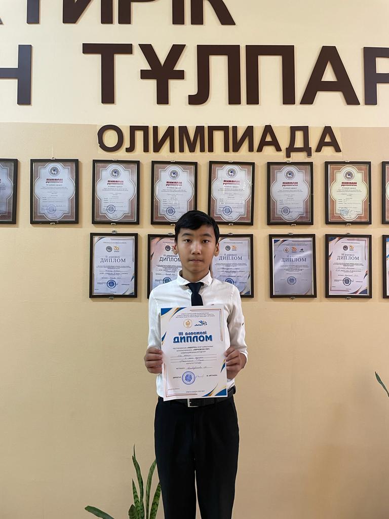 24 декабрь 2022 0 1 2 3 4 5 5-7 сынып аралығында "Зерде " ғылыми жобасының қалалық кезеңінде 6 сынып оқушысы Сыдық Бекнұр "М. Жұмабаевтың " Түркістан " өлеңінің көркемдік ерекшелігі және тарихи құндылығы" атты тақырыпта 1 орын иеленді. Жетекшісі : Турк