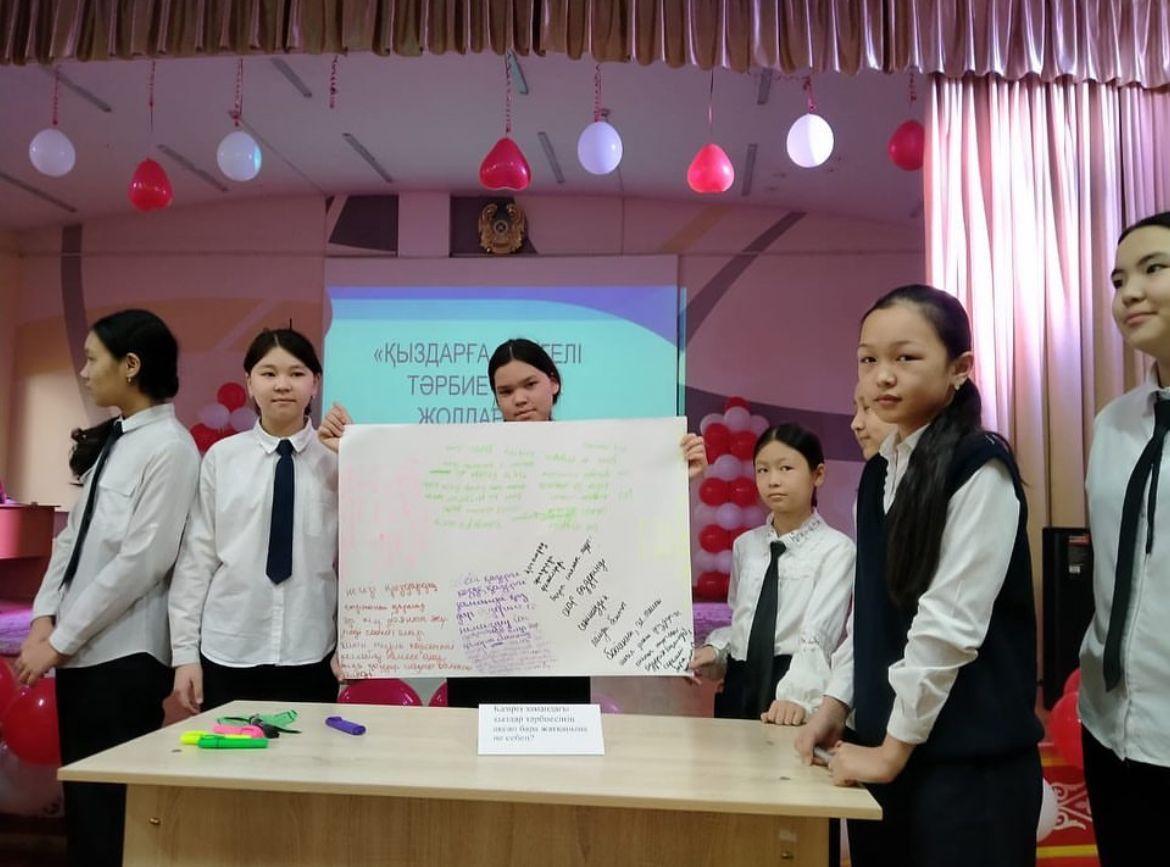 04 март 2023 0 1 2 3 4 5 «Қыздарға өнегелі тәрбие» 6 сыныптармен қыздармен жиын өтті. Мектеп психологы Божикенова Э.А психологиялық тренинг ұйымдастырды.