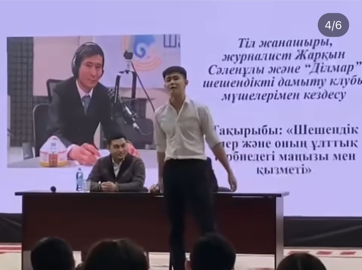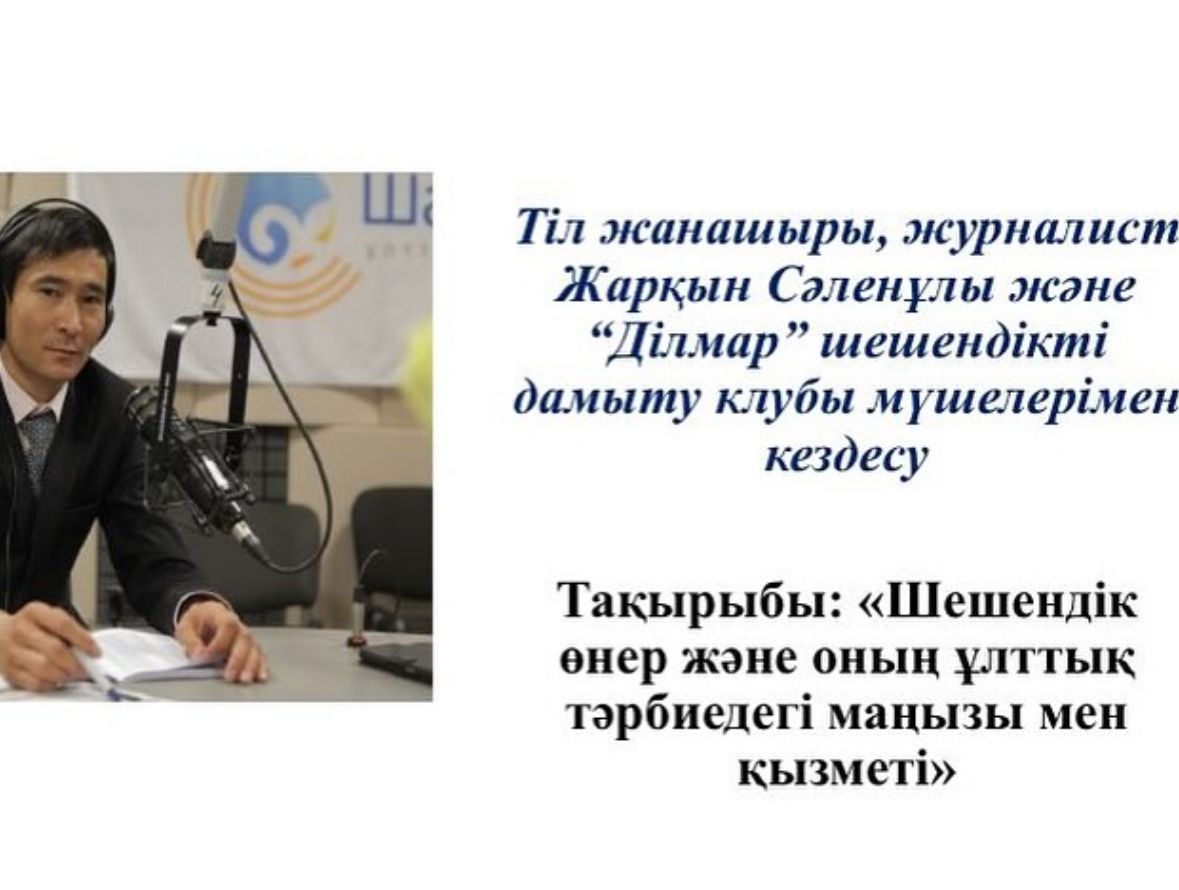 19 қаңтар күні Тіл жанашыры, журналист Жарқын Сәленұлы және "Ділмар" шешендікті дамыту клубының мүшелерімен "Шешендік өнер және оның ұлттық тәрбиедегі маңызы мен қызметі" тақырыбындағы кездесу өтті. Қазақтың шешендік сөздерін өзге жұрттың атақты адамдары, ғалымдары жоғары бағалады. Шешендік сөздер нұсқаларын академик В.В.Радлов (XIX ғ.) зерттеп жинаған болатын. Ол "Қазақтар... мүдірмей, кідірмей, ерекше екпінмен сөйлейді. Ойын дәл, айқын ұғындырады. Ауыз екі сөйлеп отырғанның өзңнде сөйлеген сөздер ұйқаспен, ырғақпен келетіндігі соншалық, бейне бір өлең екендеп таң қаласын",-деп көрсете отырып, әсіресе қазақ тілінің тазалығы мен табиғилығын дұрыс аңғарып, қазақтардың сөзге тапқырлығы мен шешендігі өзіне ерекше әсер еткенін жазған екен.