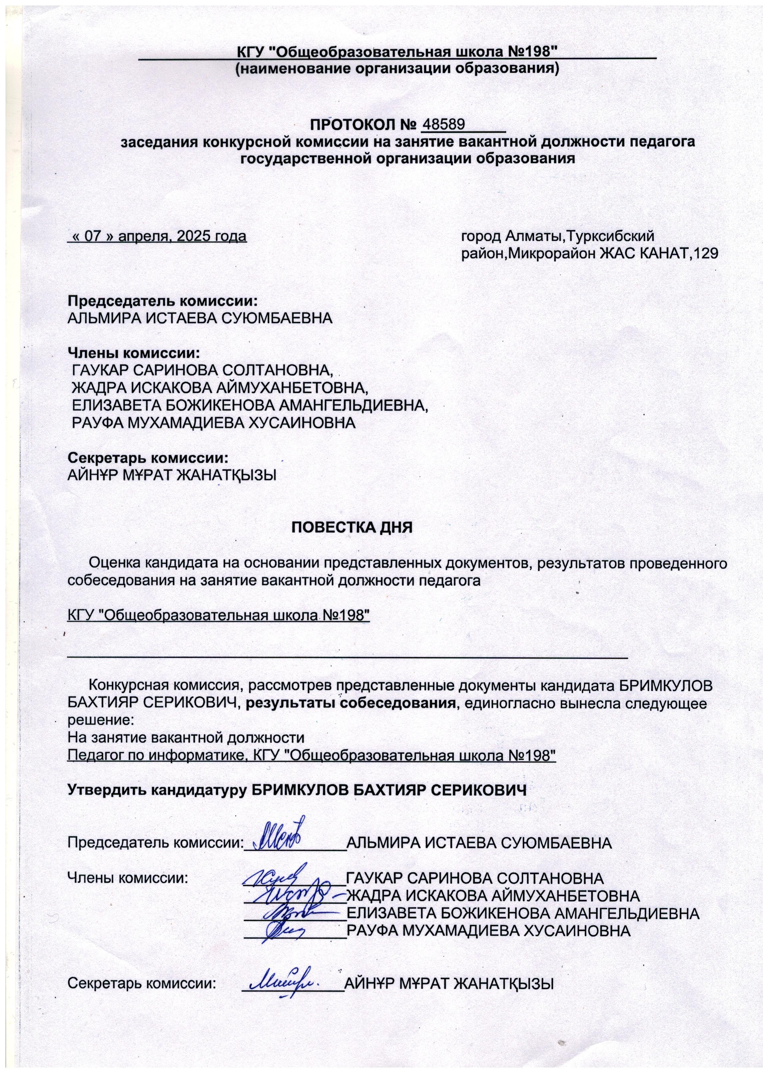 Алматы қаласы Білім басқармасының" №198 жалпы білім беретін мектебі " КММ
