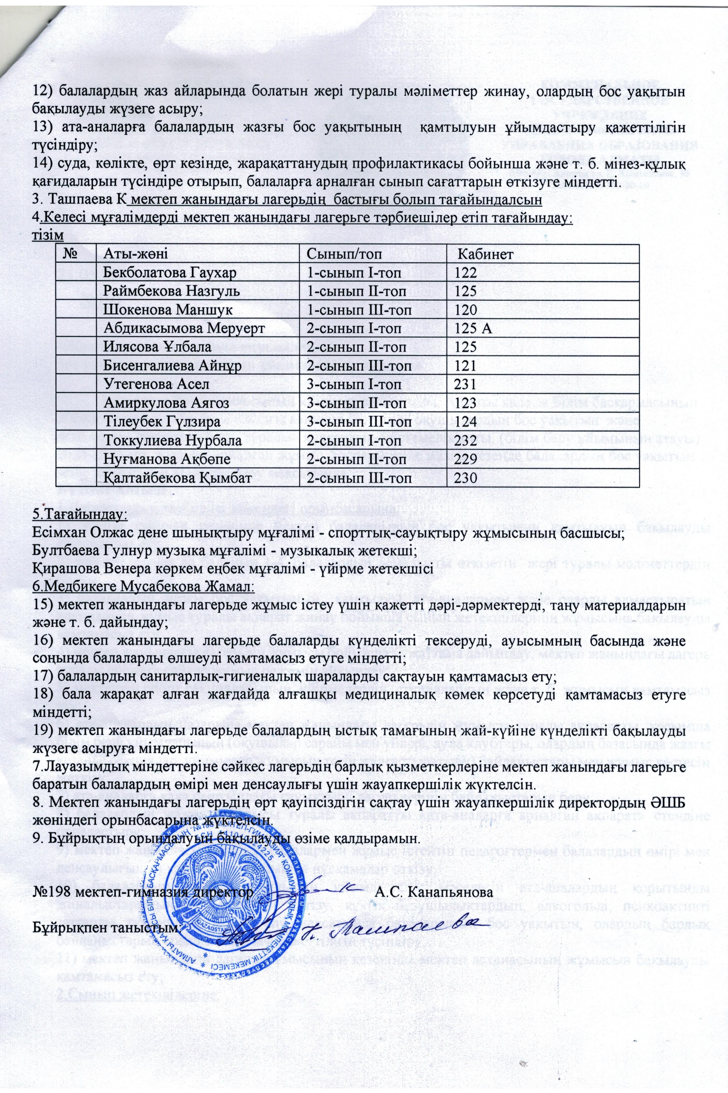 21 май 2025 0 1 2 3 4 5 Жазғы демалыс кезіндегі оқушыардың бос уақыты мен демалысын ұйымдастыру туралы БҰЙРЫҚ