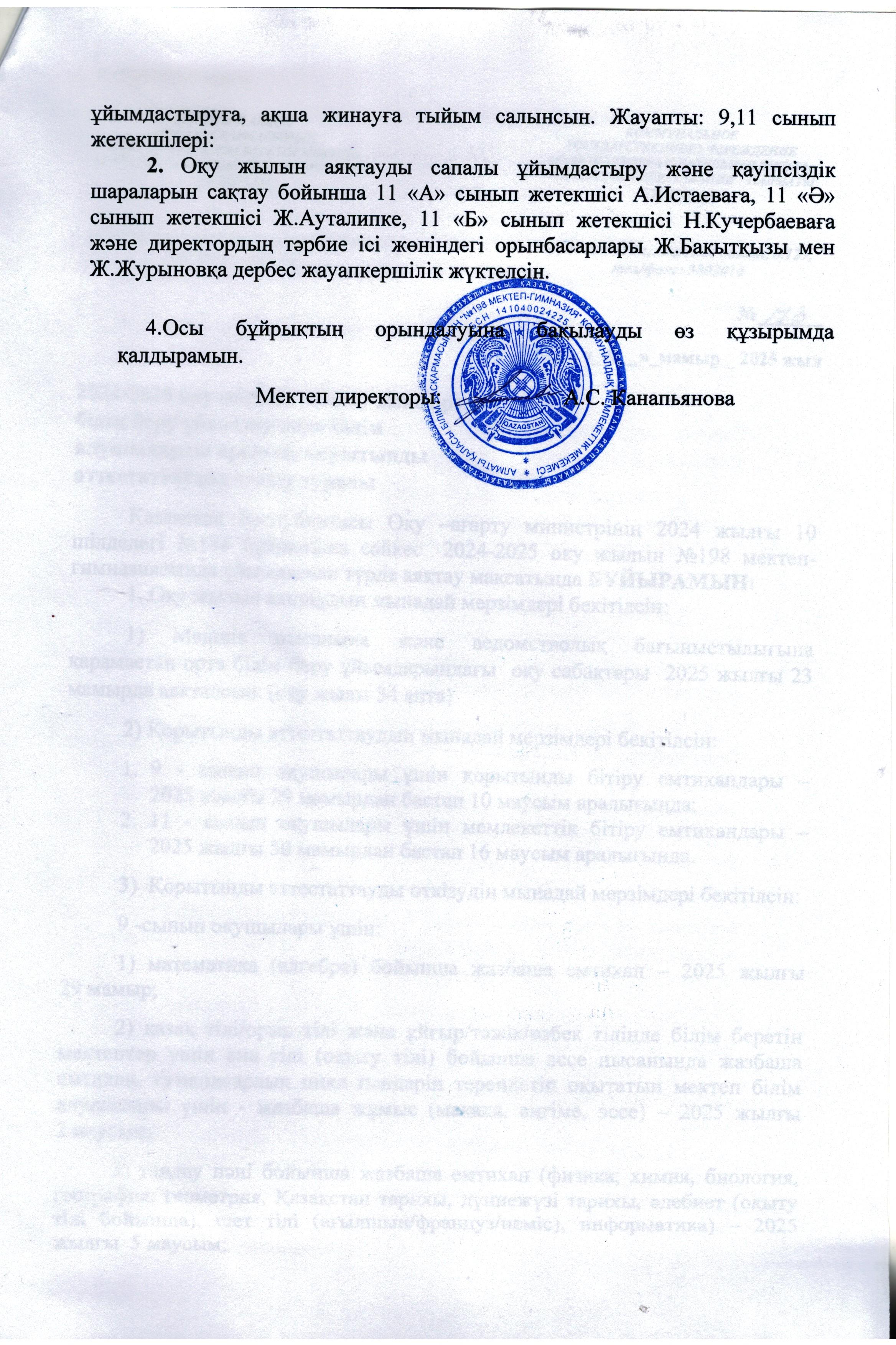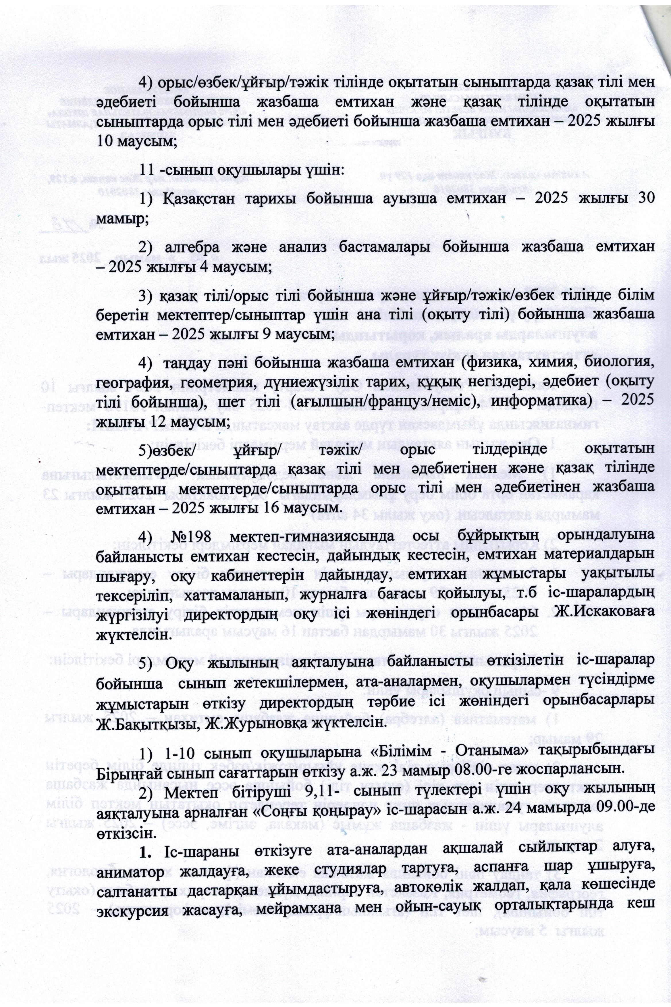 05 май 2025 0 1 2 3 4 5 2024-2025 оқу жылын аяқтау және орта білім беру ұйымдарында білім алушыларды аралық, қорытынды аттестаттаудан өткізу туралы