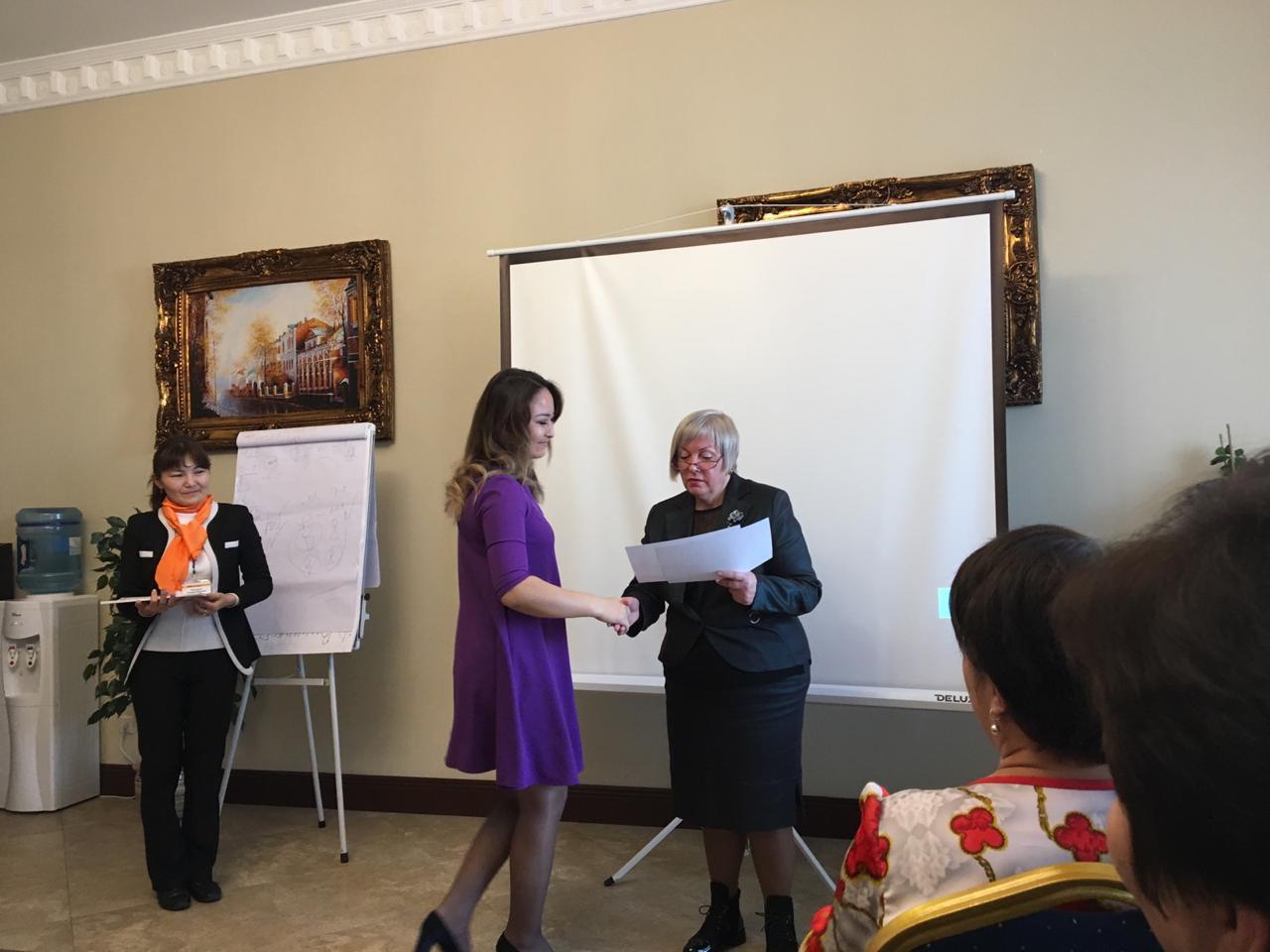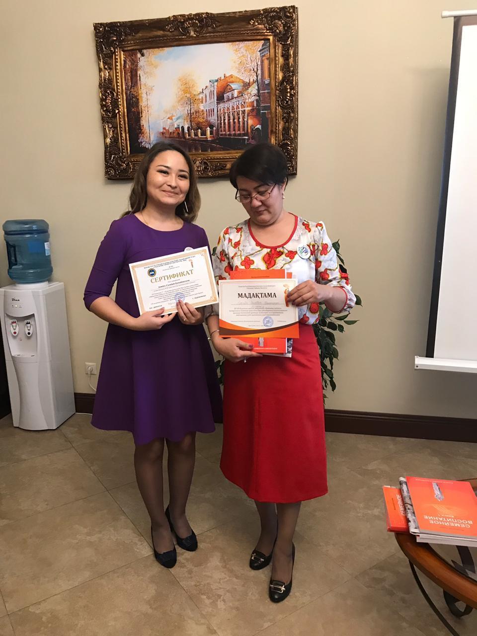 04 декабрь 2019 0 1 2 3 4 5 Отбасылық тәрбие Алматы қаласы мен Батыс Қазақстан облысынан отбасылық тәрбие бойынша біліктілікті арттыру курсына Алматы қаласынан 30 психолог келді. Соның ішінде мектебіміздің психолыгы Аятбек Сымбат Қанатқызы қатысып өзінің біліктілігін дамытып келді.