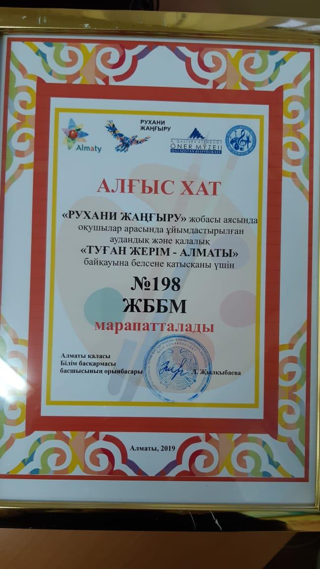 12 декабрь 2019 0 1 2 3 4 5 "Туған жерім - Алматы" "Рухани Жаңғыру" жобасы аясында "Туған жерім - Алматы" деген оқушылар арасында өткізілген конкурс. Сәндік қолданбалы өнердегі, коллаж техникасында жасалынған жұмыстар қабылданған.