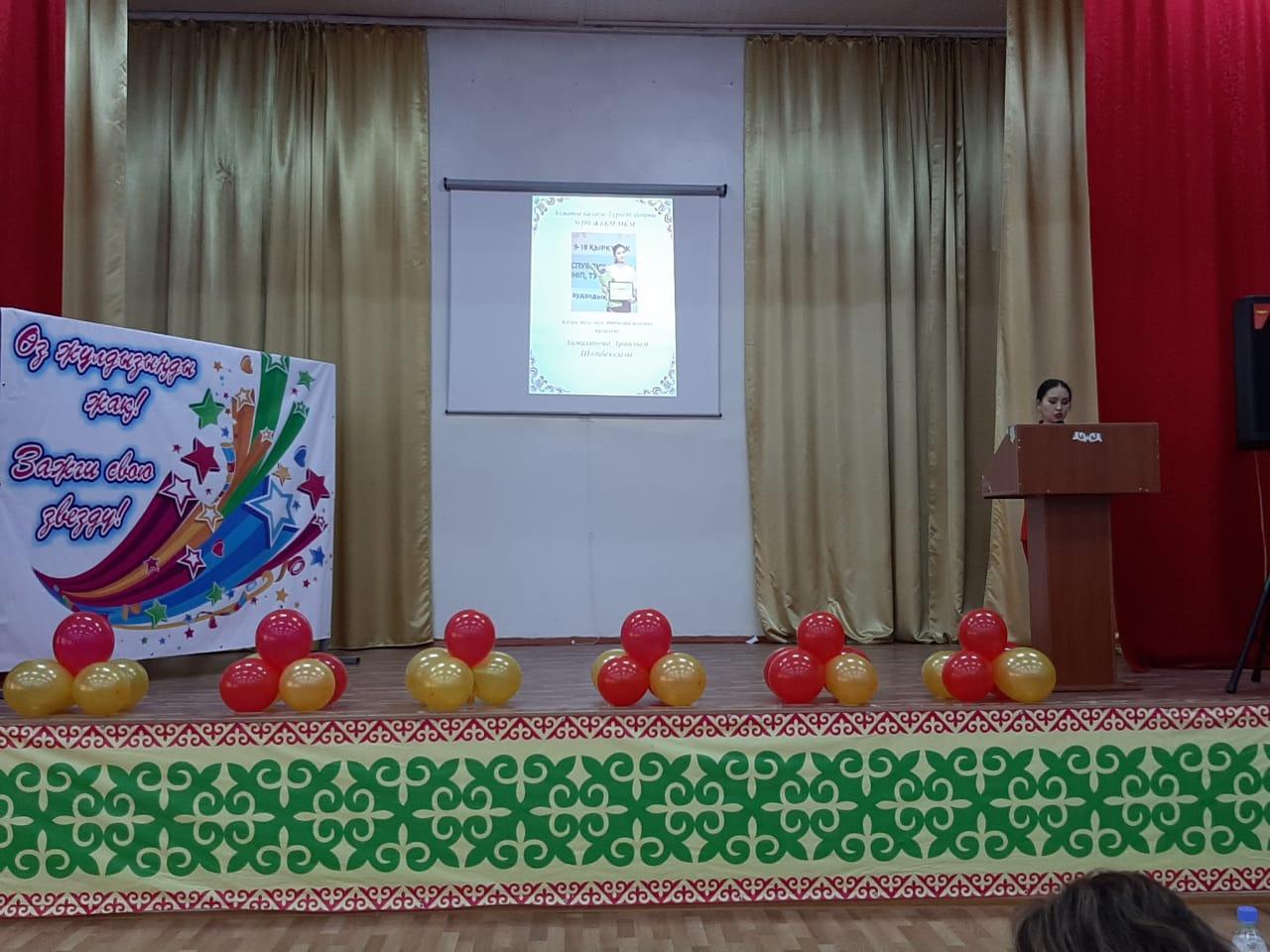 10 март 2020 0 1 2 3 4 5 "Өз жұлдызыңды жақ" Жас педагогтердің "Өз жұлдызыңды жақ" аудандық байқауына мектебіміздің қазақ тілі мен әдебиеті мұғалімі Аймаханова Арайлым қатысып жүлделі I орынды иеленді
