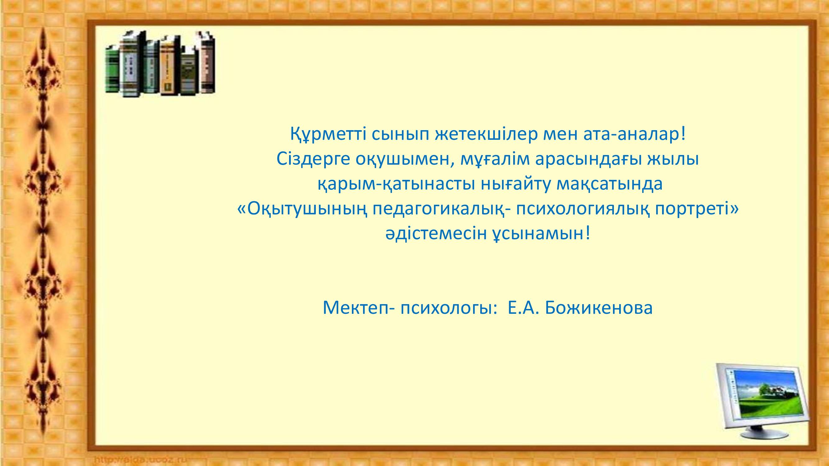Оқытушының педагогикалық - психологиялық портреті