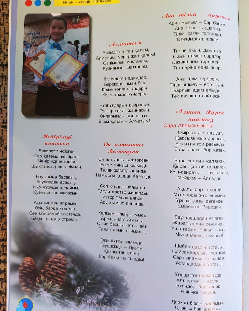 23 январь 2021 0 1 2 3 4 5 "Мөлдір бұлақ" Мектебіміздің ақындық үйірме оқушысы Сарыбай Диана өз шығарған өлеңдері "Мөлдір бұлақ" журналына шықты. Жарайсың👍. Қаламың ұштала берсін📝📝📝. Үйірме жетекшісі: Саят Қамшыгер.