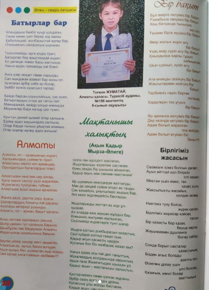 "Жас ақындар" клубының мүшесі 6 "Б" сынып оқушысы Жұматай Тоғжанның өлеңдері "Мөлдір бұлақ" журналына жарияланды. Қаламың ұштала берсін, жас ақын!