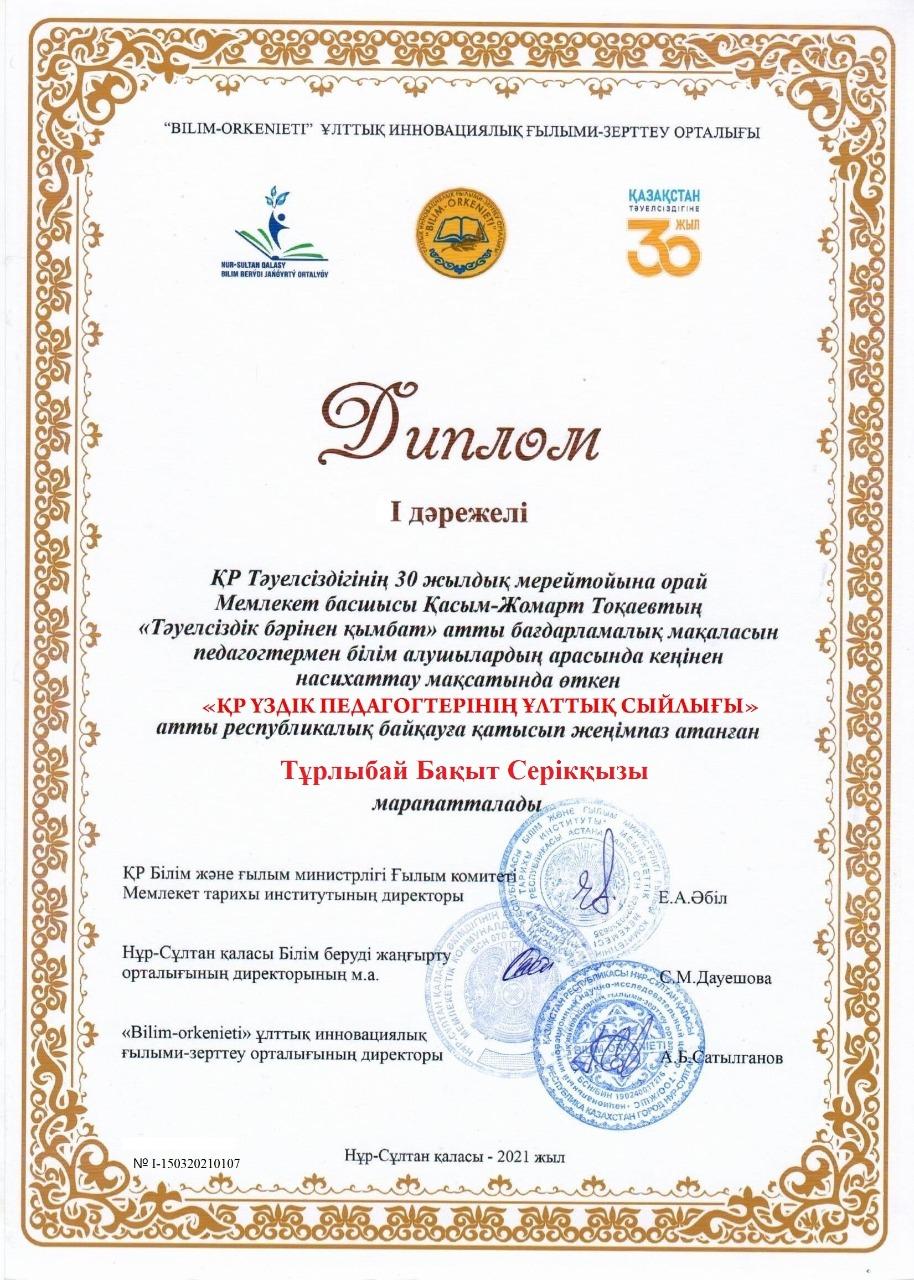 » ҚР үздік педагогтердің ұлттық сыйлығы