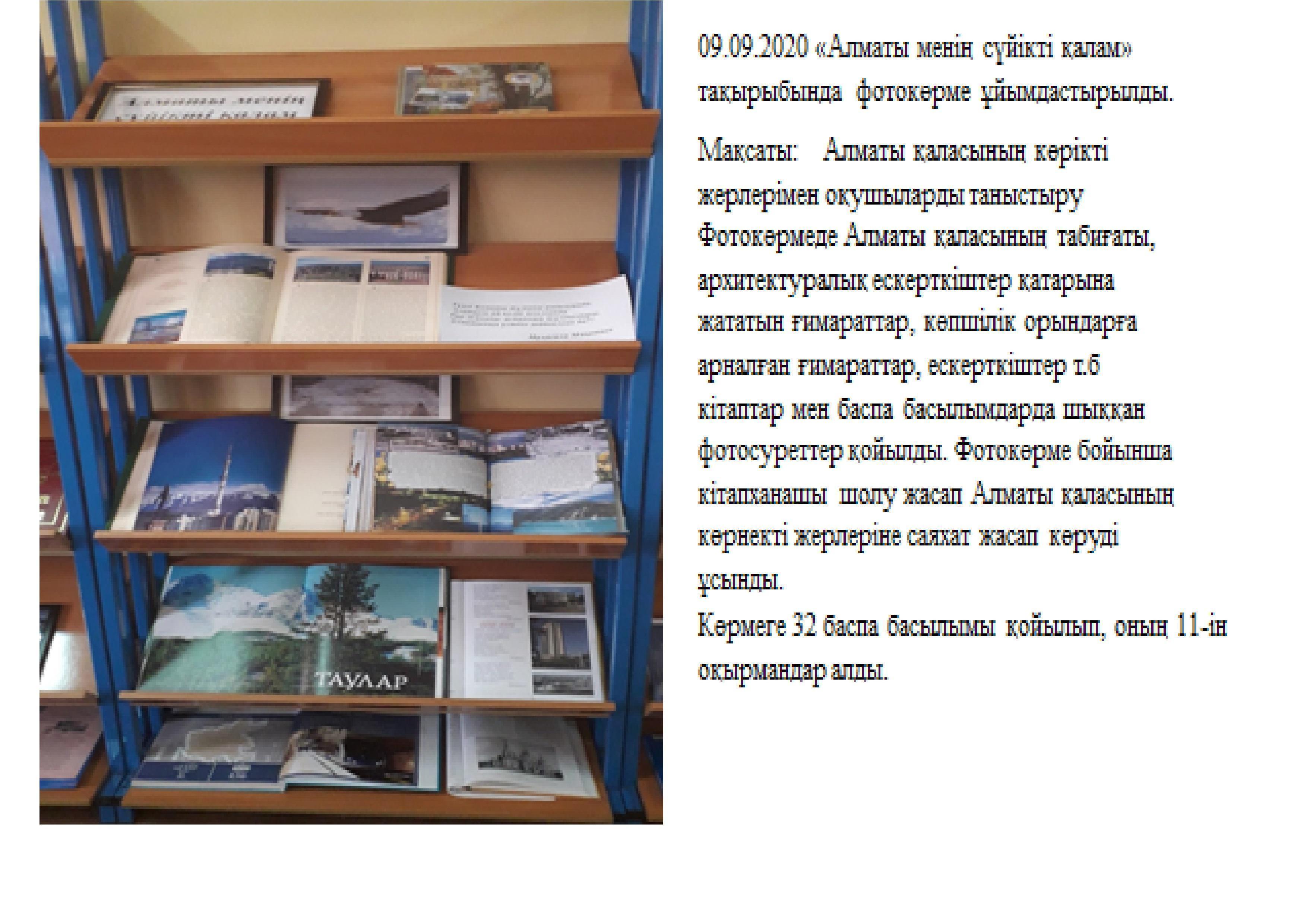 09 сентябрь 2020 0 1 2 3 4 5 Ұлттық тәрбие «Алматы менің сүйікті қалам» тақырыбында фотокөрме ұйымдастырылды.