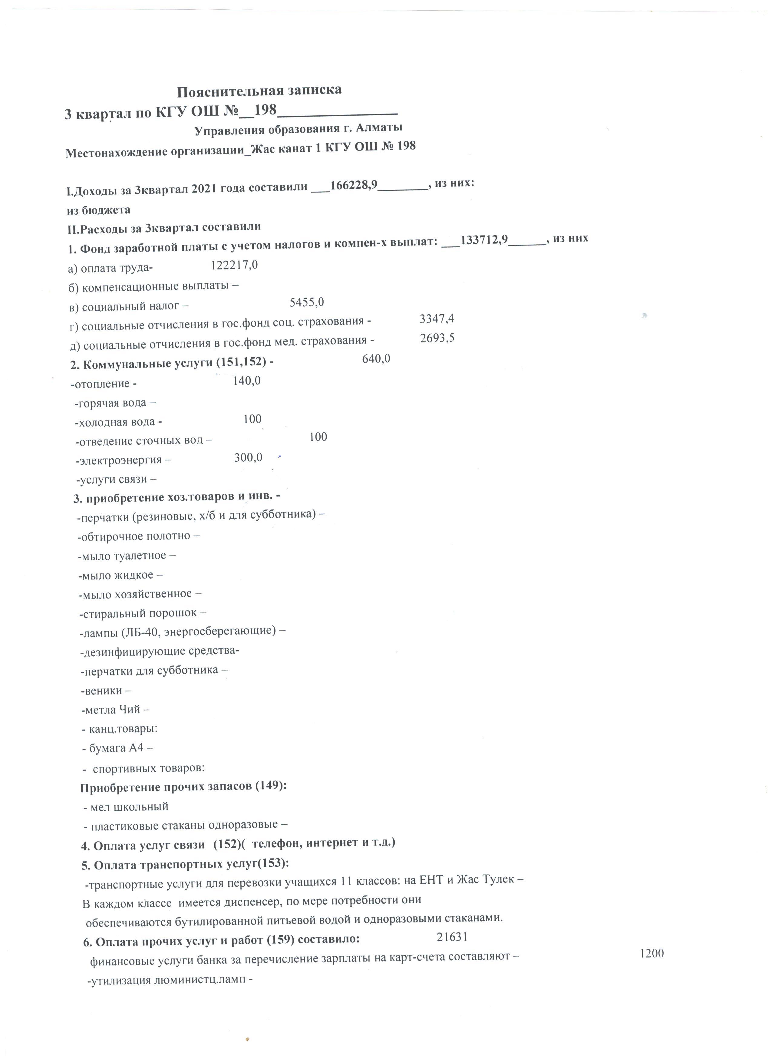 Кіріс және шығыс есебі 3 квартал 2021 жыл