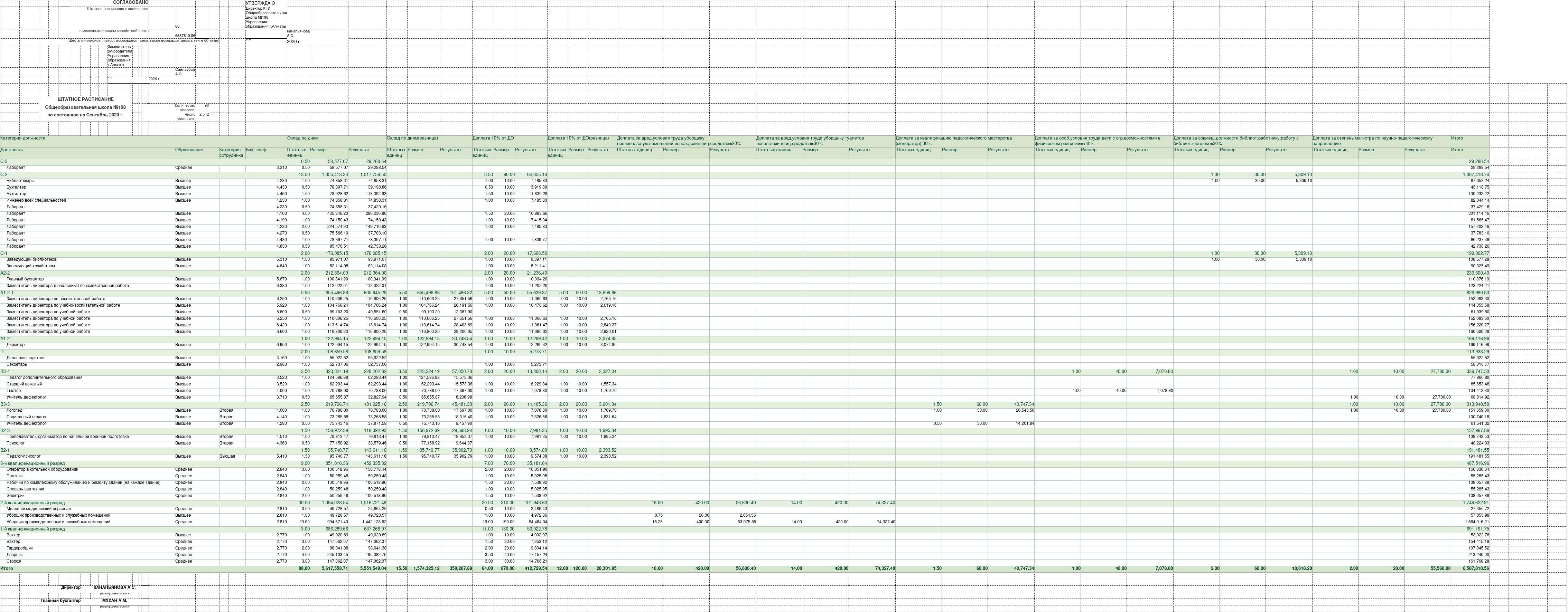 » Штат кестесі 2020-2021 жыл