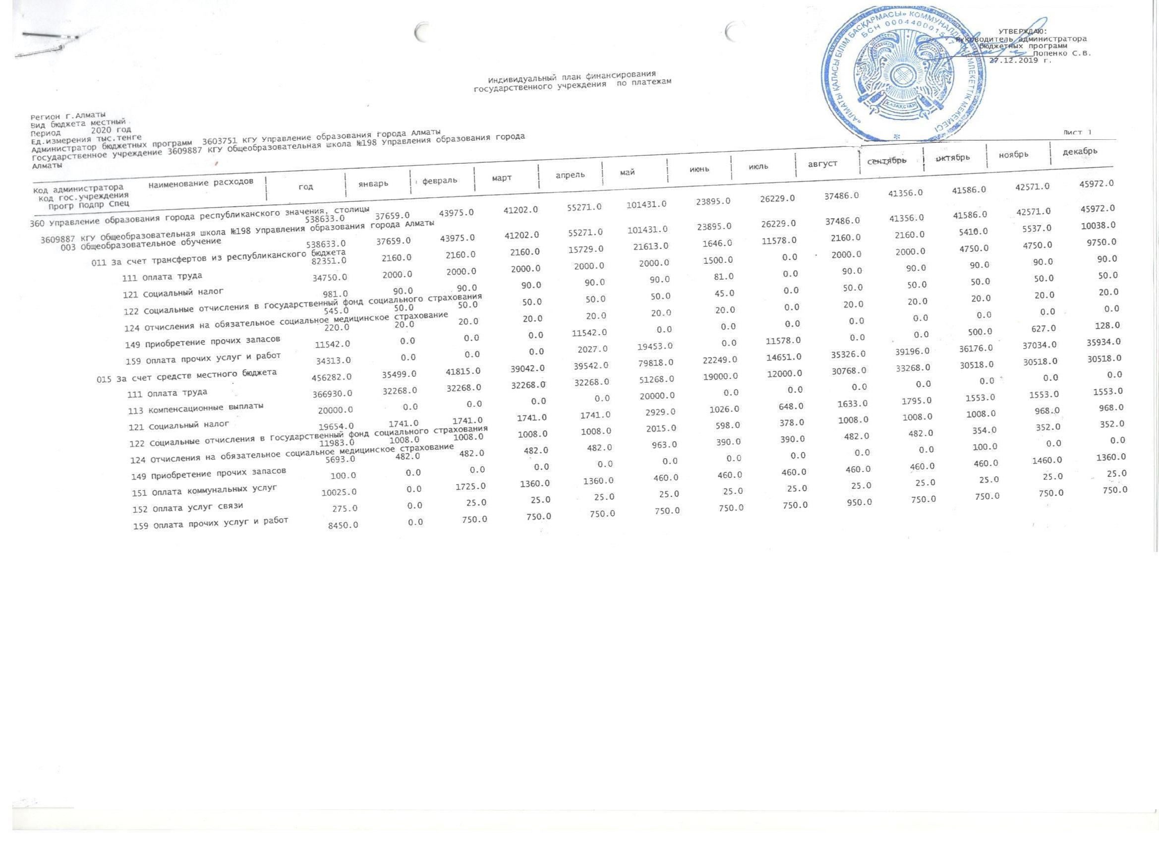 Алматы қаласы Білім басқармасының" №198 жалпы білім беретін мектебі " КММ