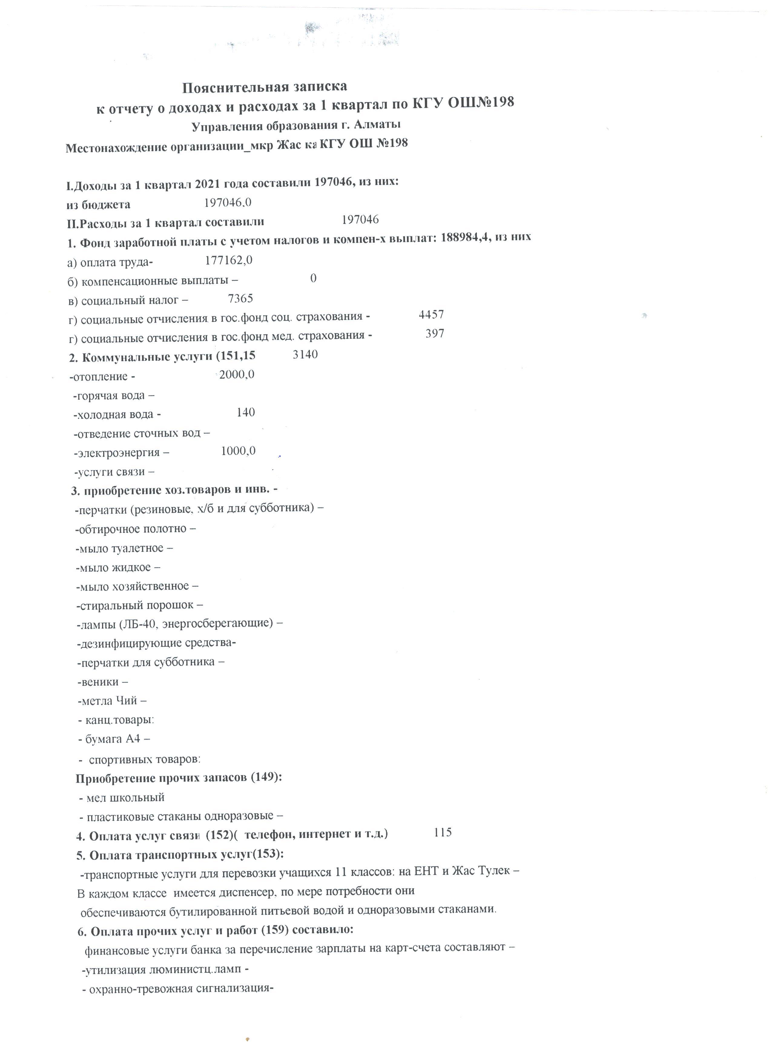 Кіріс және шығыс есебі 1 квартал 2021 жыл