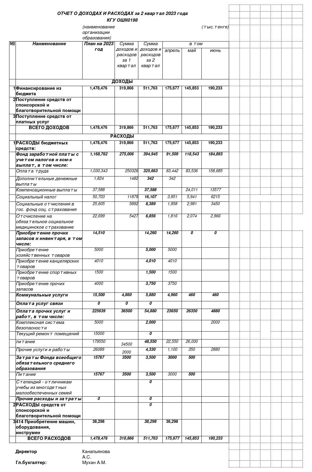 Кіріс және шығыс есебі 2 квартал 2023 жыл
