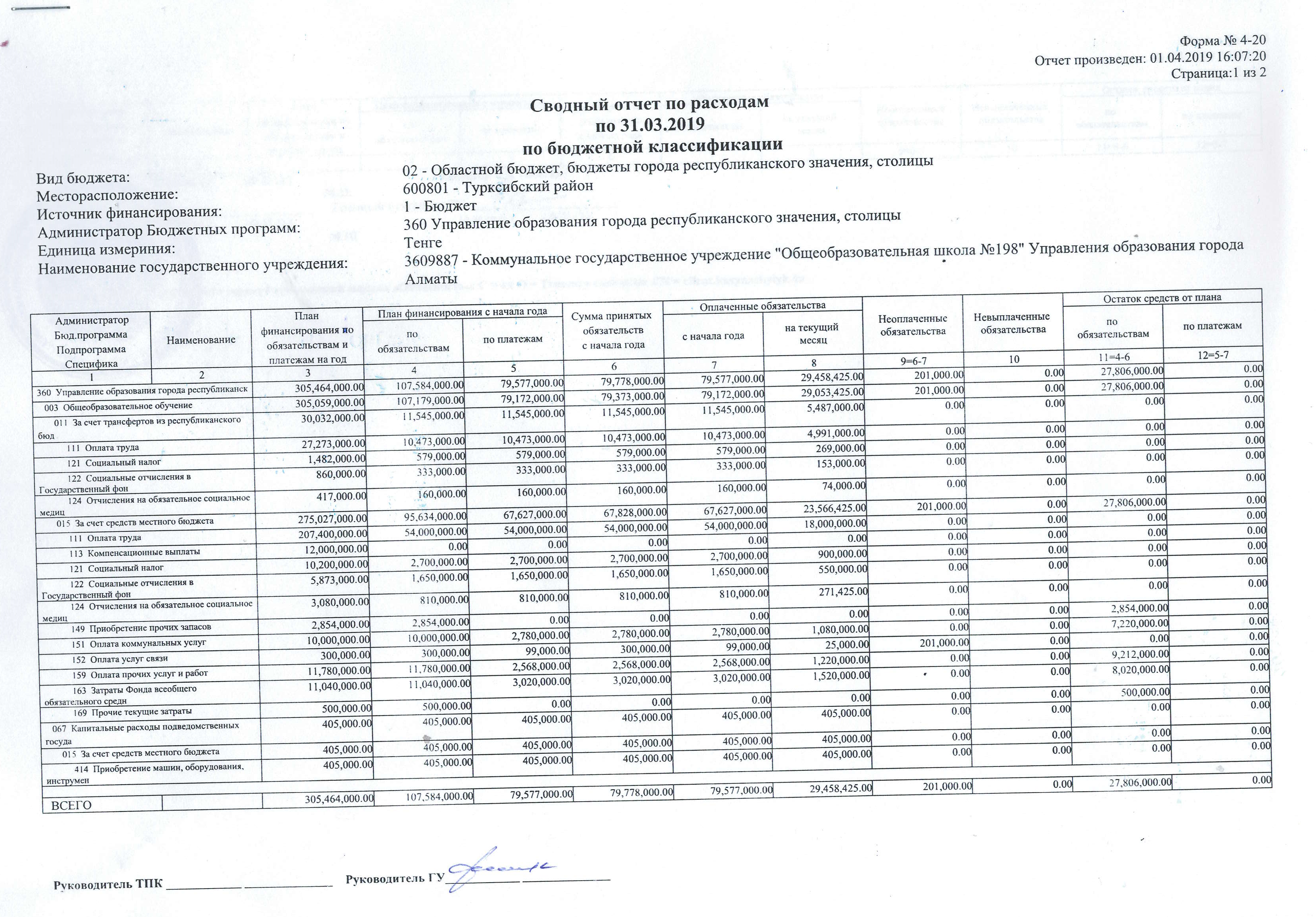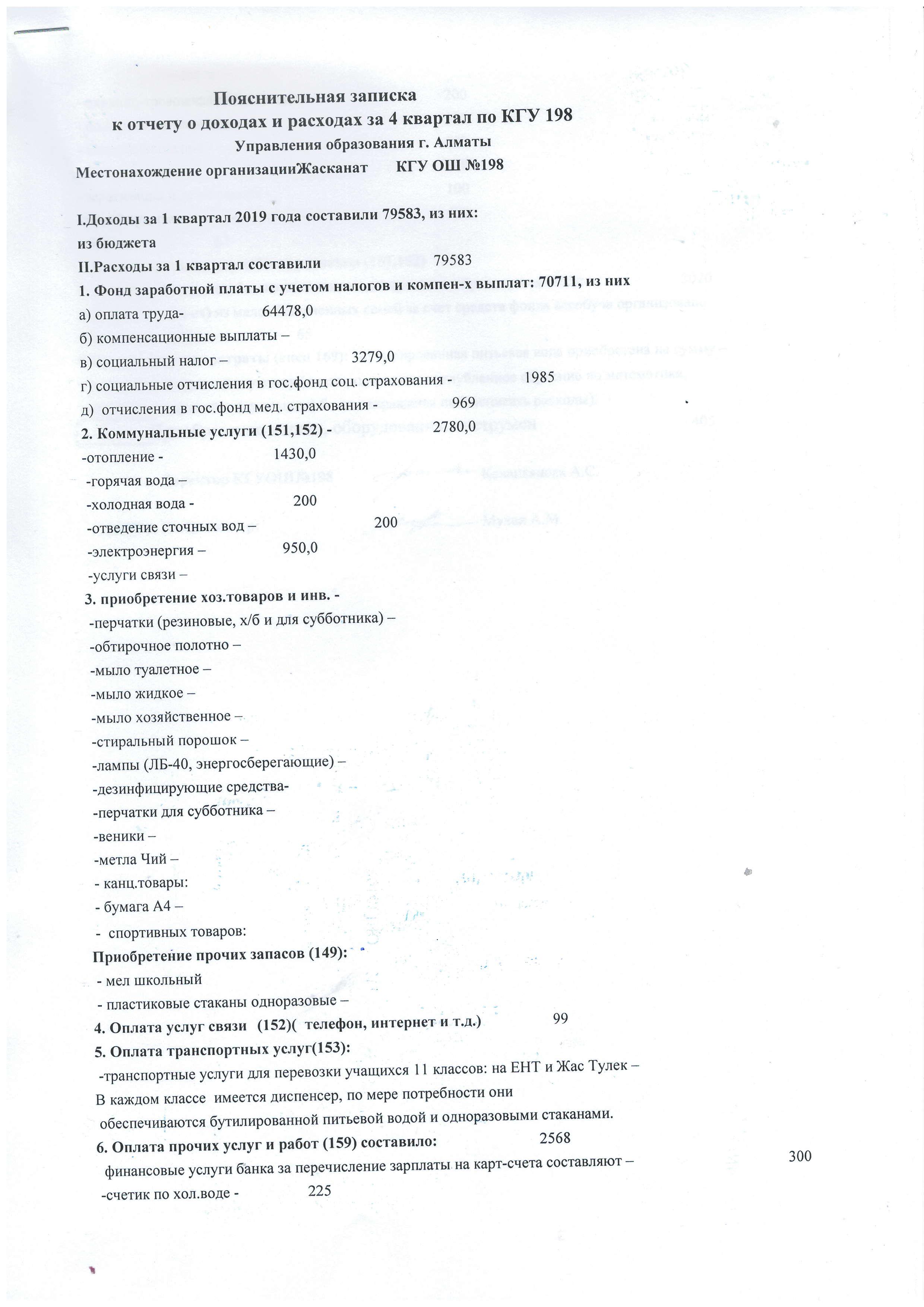 Кіріс және шығыс есебі 1 квартал 2019 жыл