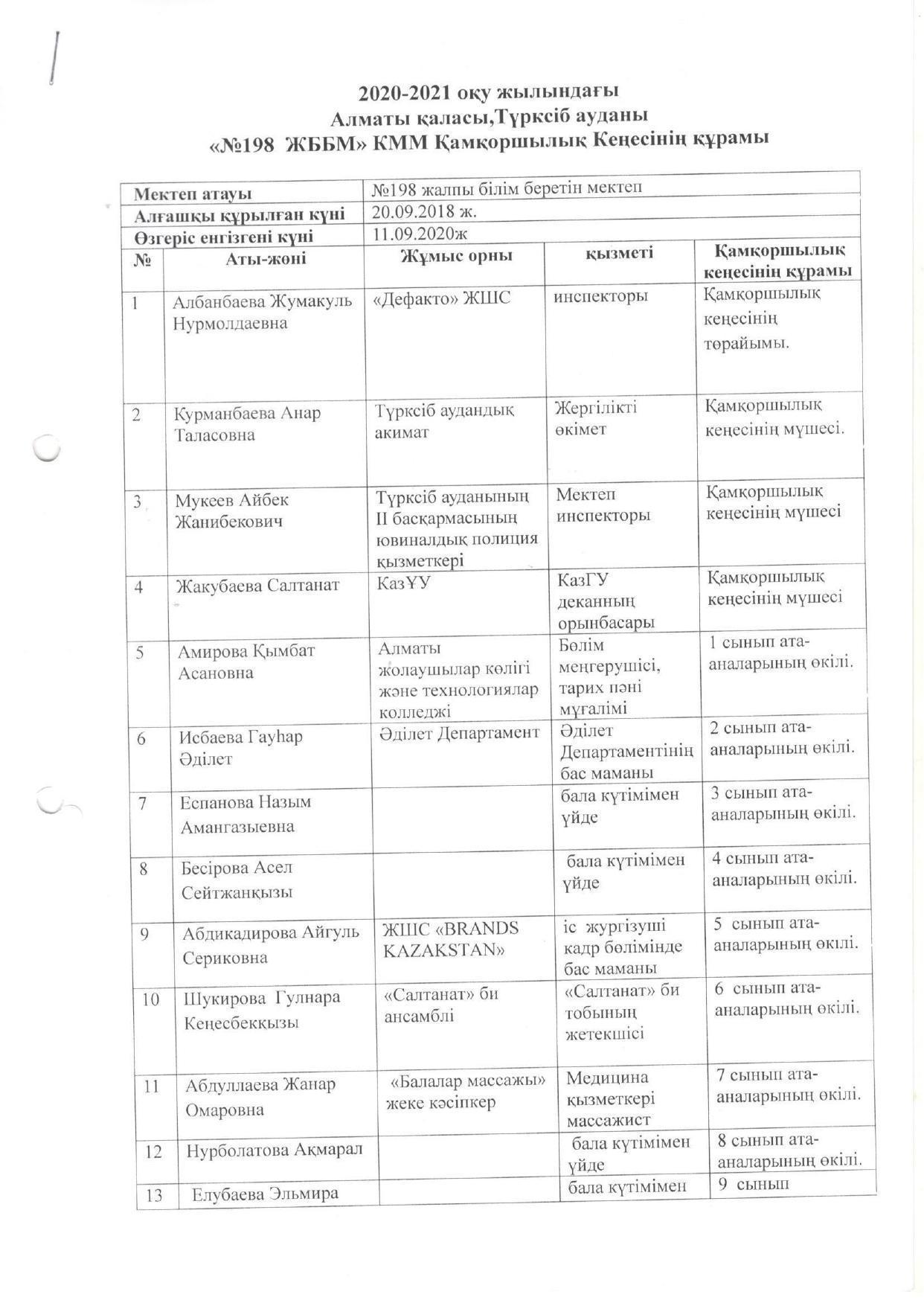 Алматы қаласы Білім басқармасының" №198 жалпы білім беретін мектебі " КММ
