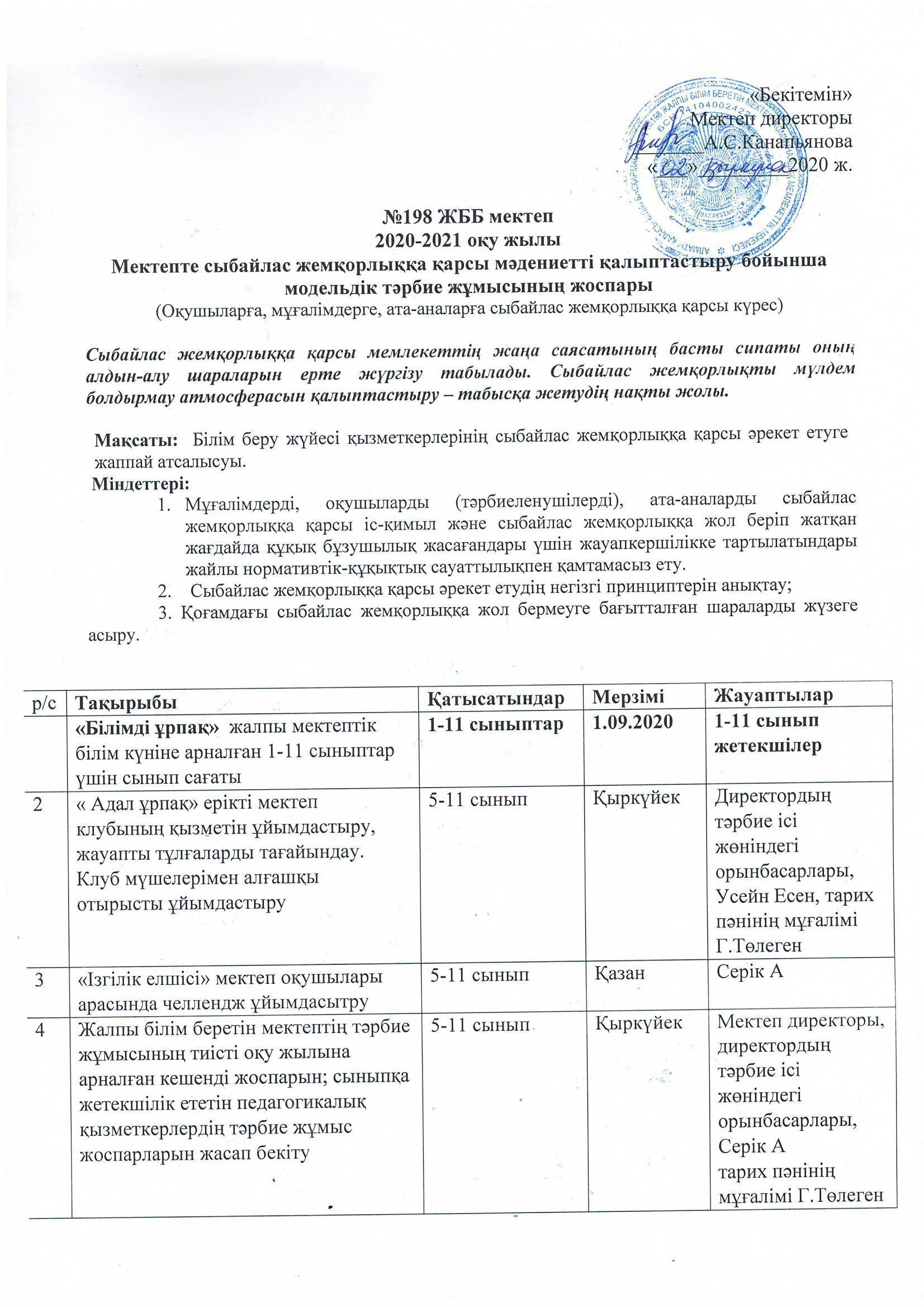 Алматы қаласы Білім басқармасының" №198 жалпы білім беретін мектебі " КММ
