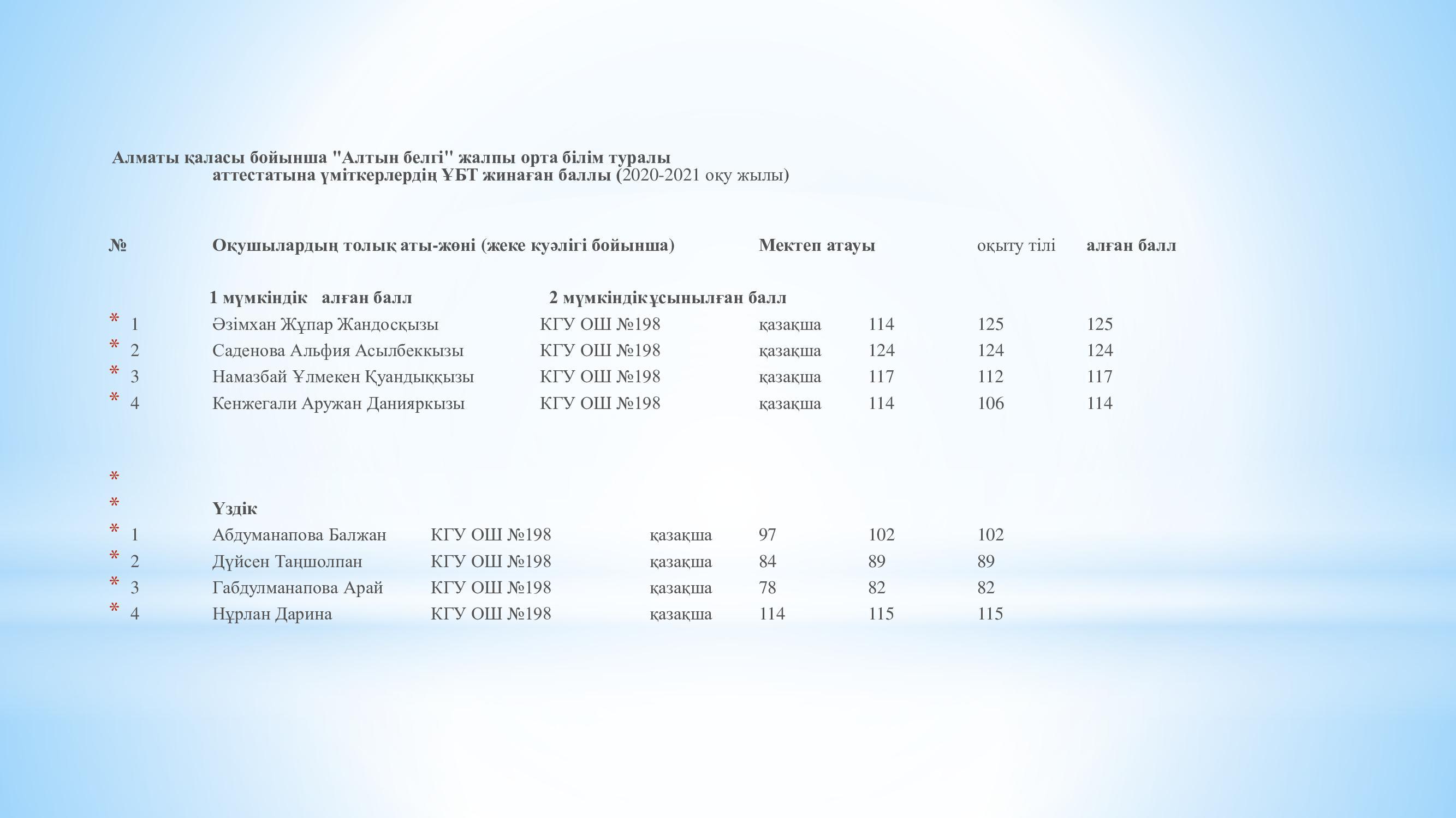 Алматы қаласы Білім басқармасының" №198 жалпы білім беретін мектебі " КММ