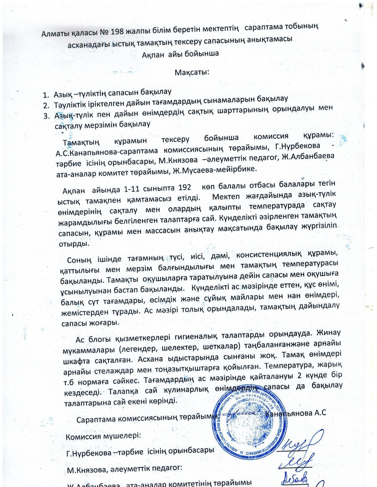 » Ыстық тамақты тексеру сапасының анықтамасы, ақпан айы