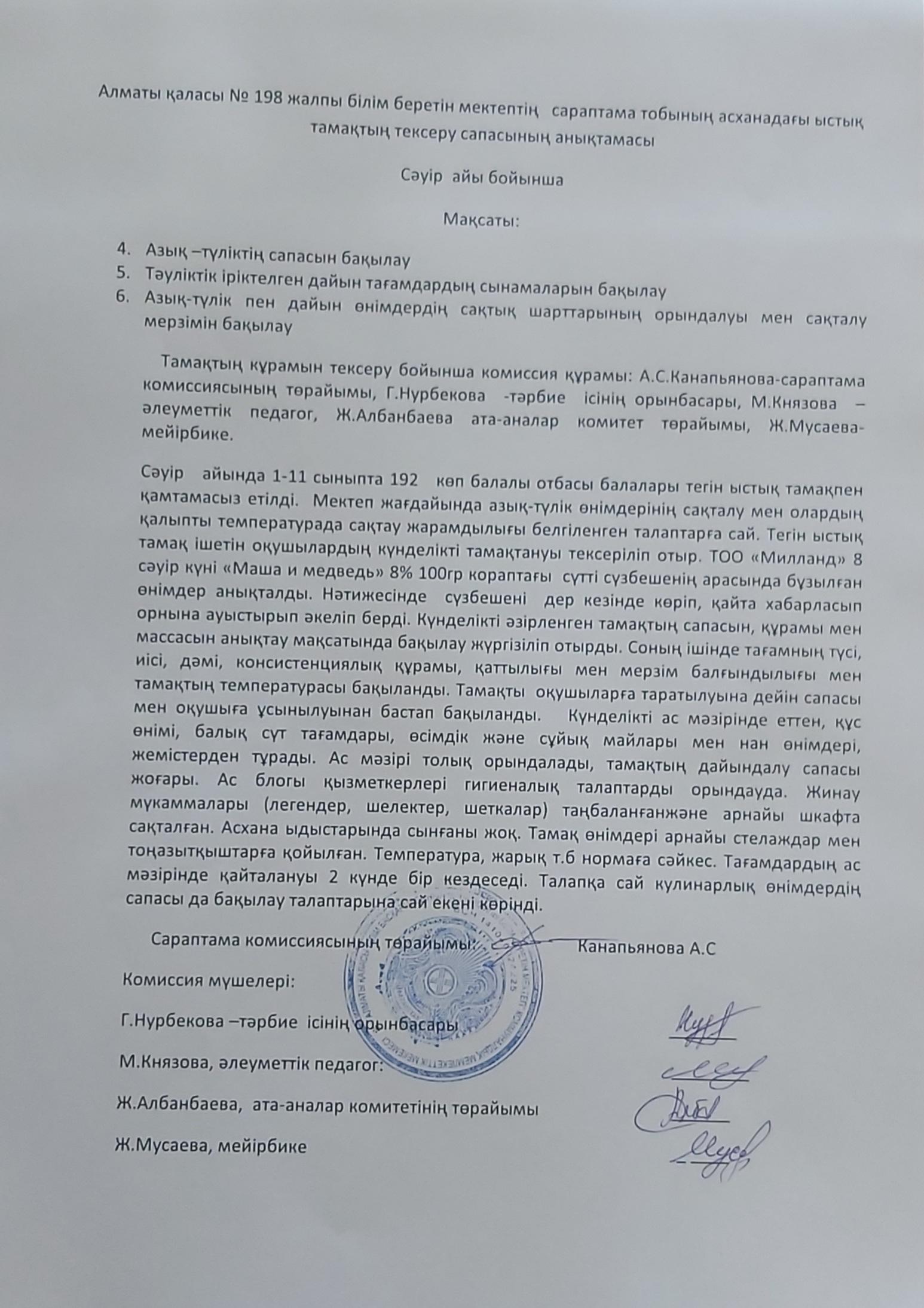 » Ыстық тамақты тексеру сапасының анықтамасы, сәуір айы