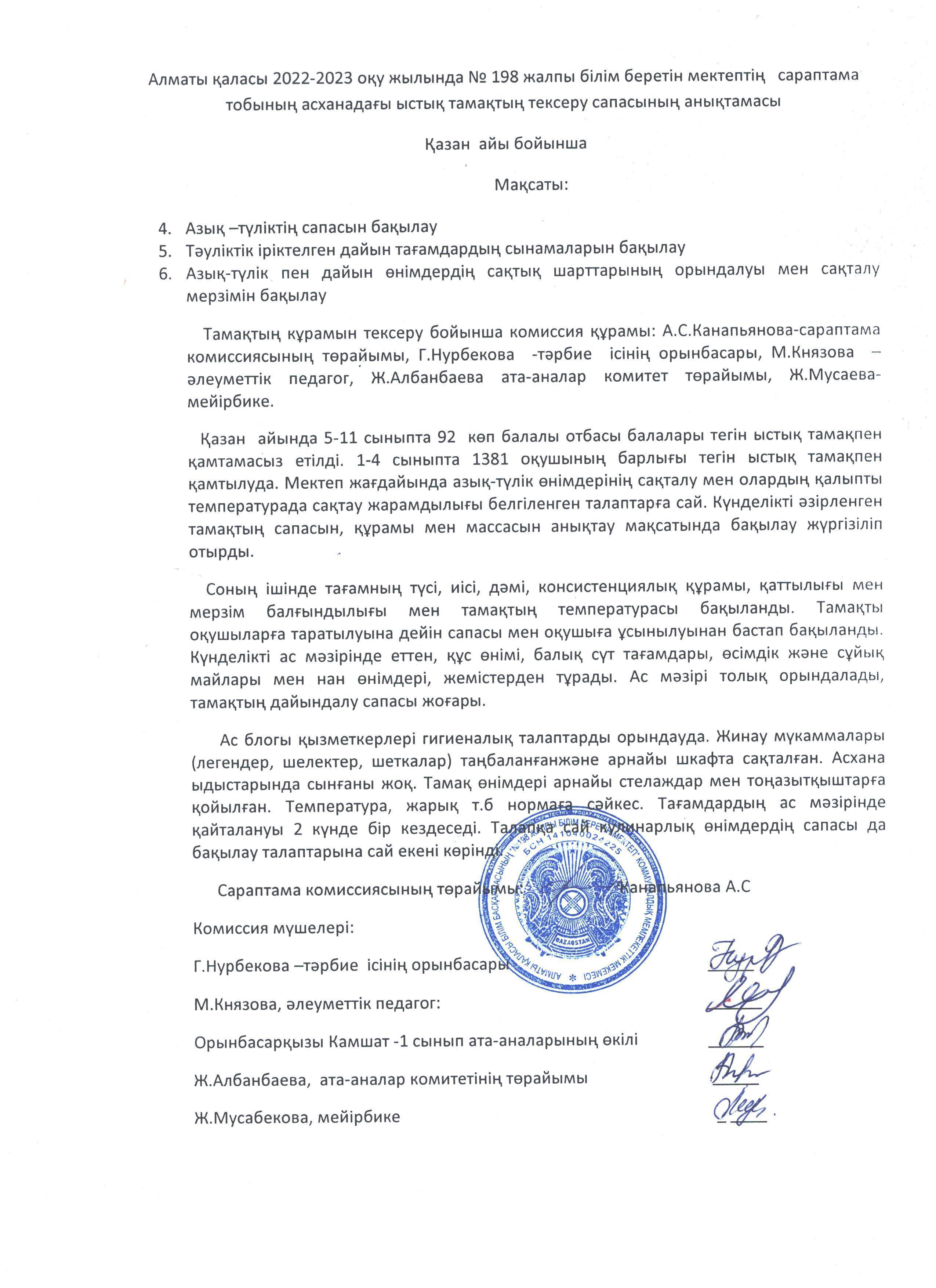 Ыстық тамақты тексеру сапасының анықтамасы қазан айы