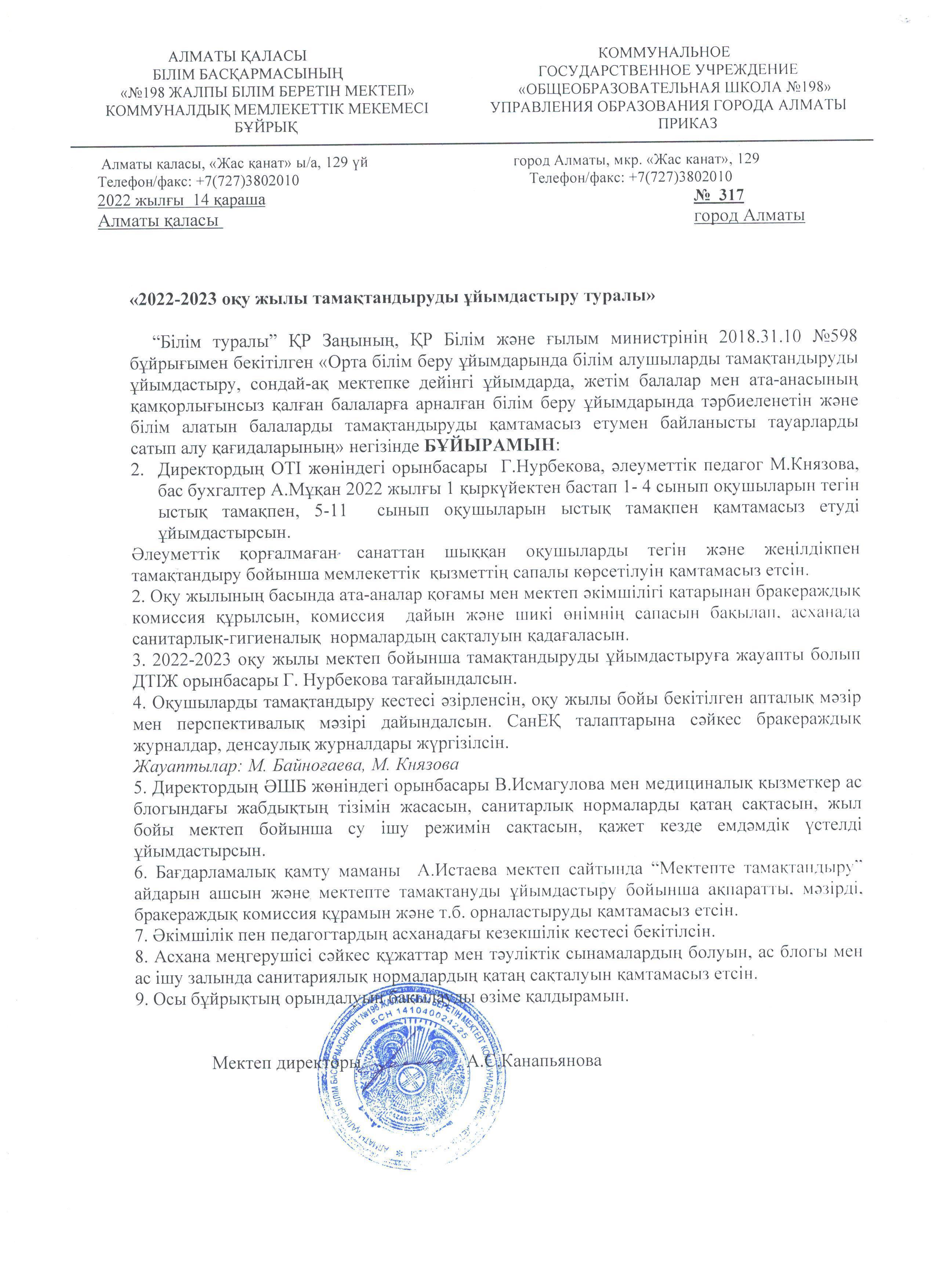 2022-2023 оқу жылы тамақтандыруды ұйымдастыру туралы