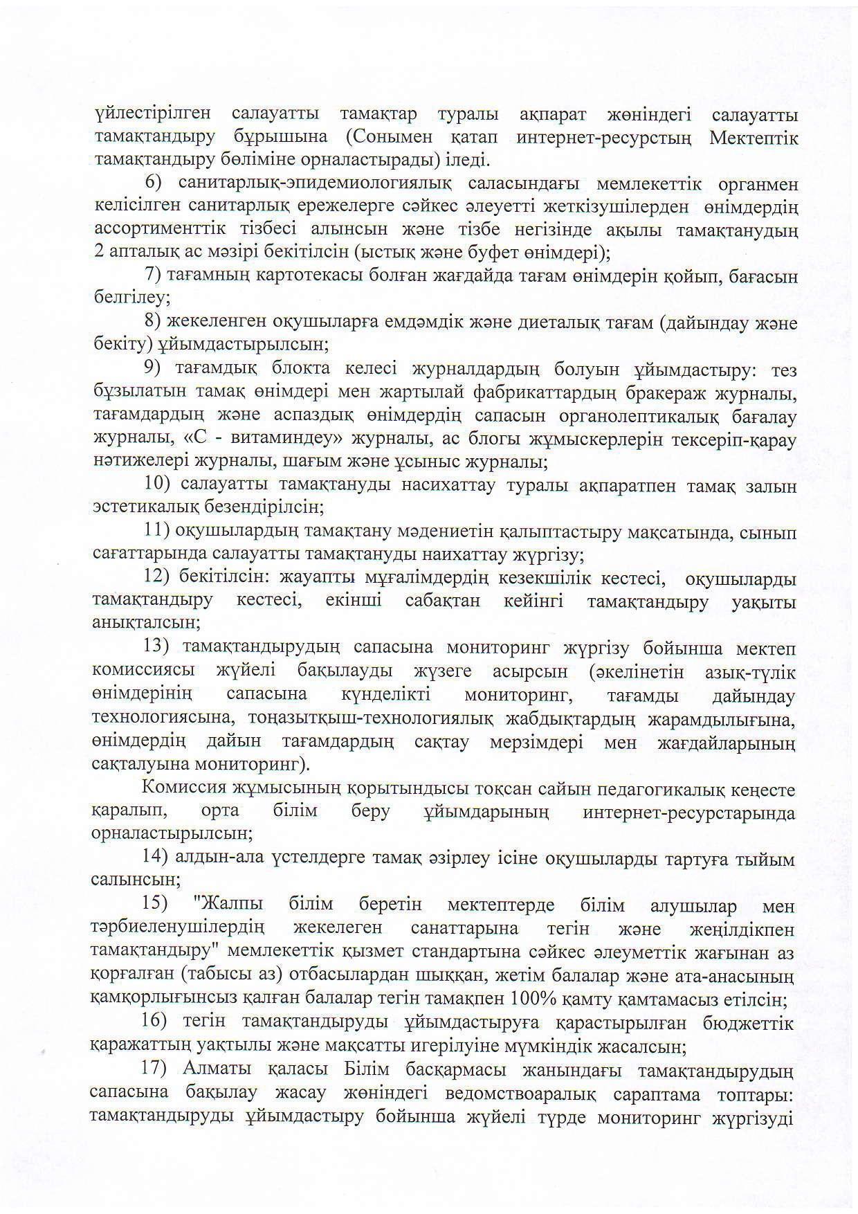 Тамақтандыру сапасын бақылау жөніндегі ведоствоаралық сараптама тобын құру туралы бұйрық