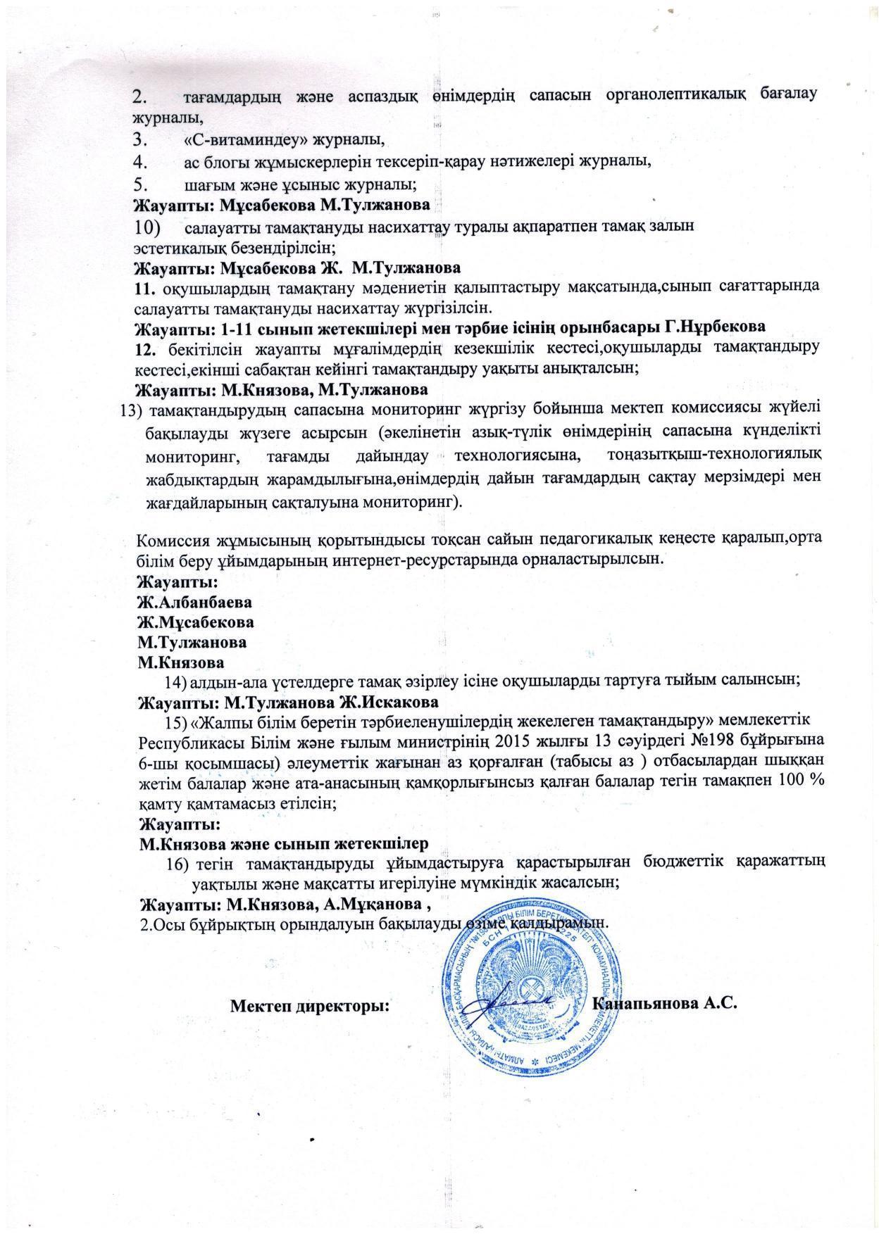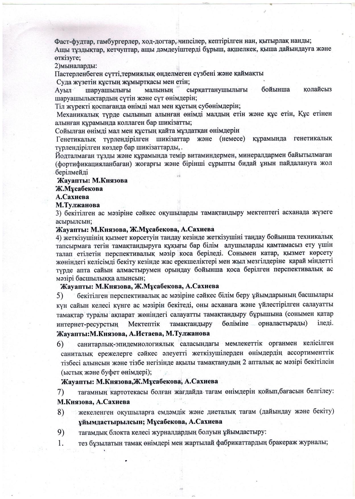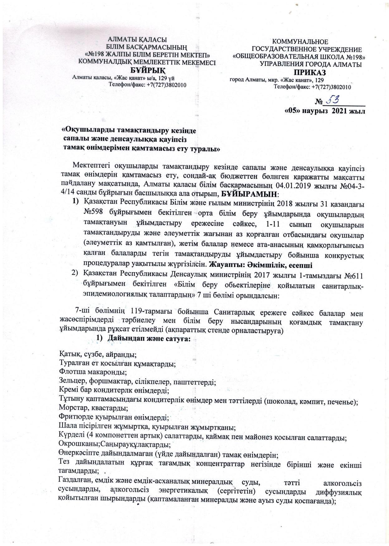 05 март 2021 0 1 2 3 4 5 Оқушыларды тамақтандыру кезінде сапалы және денсаулыққа қауіпсіз тамақ өнімдерімен қамтамасыз ету туралы