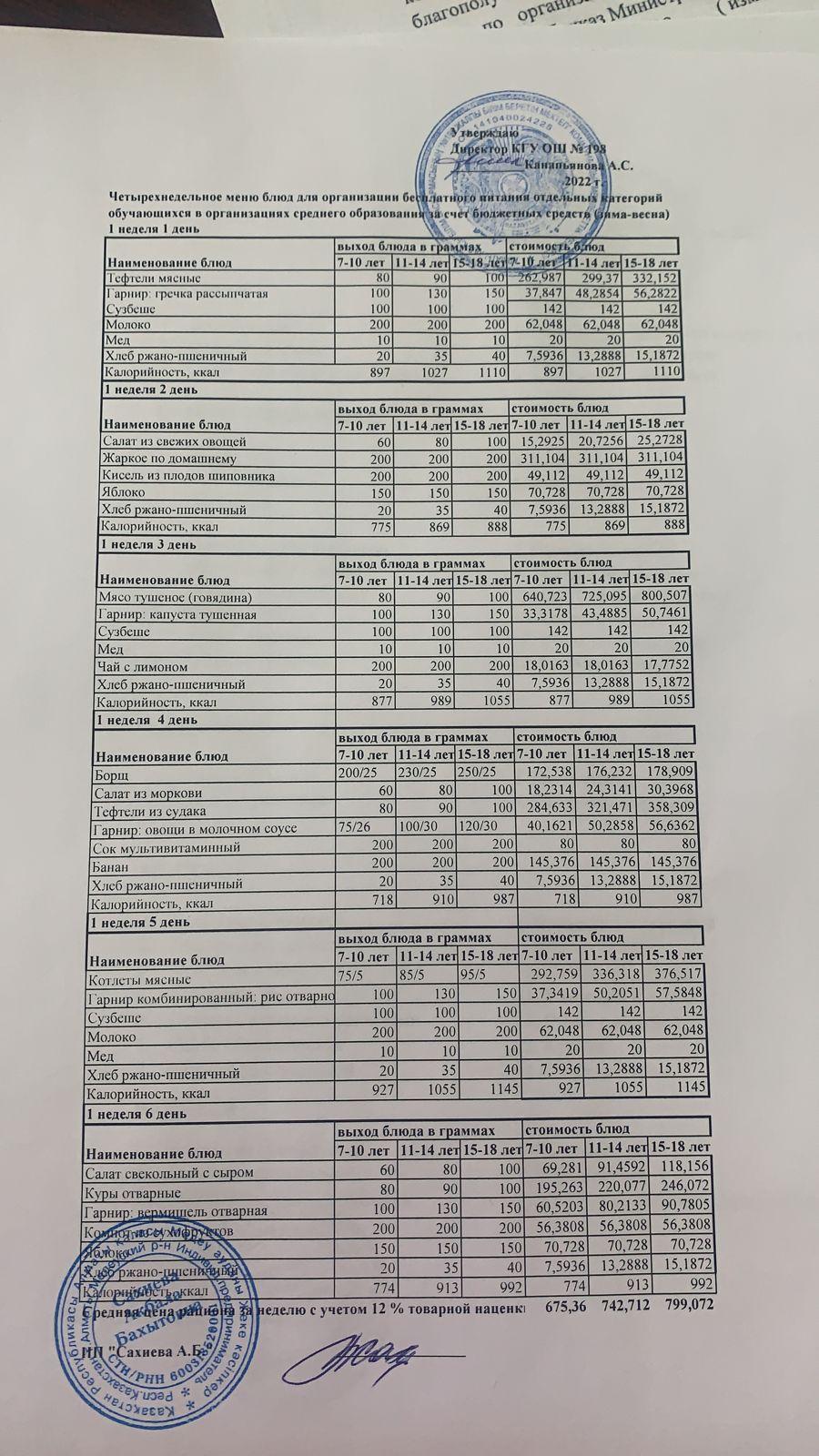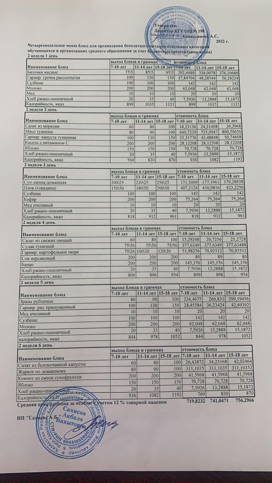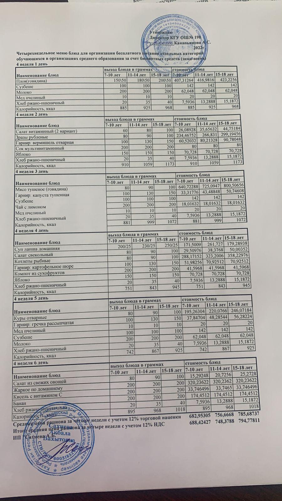Төрт апталық тегін ас мәзірі 2022 жылғы қыс-көктем