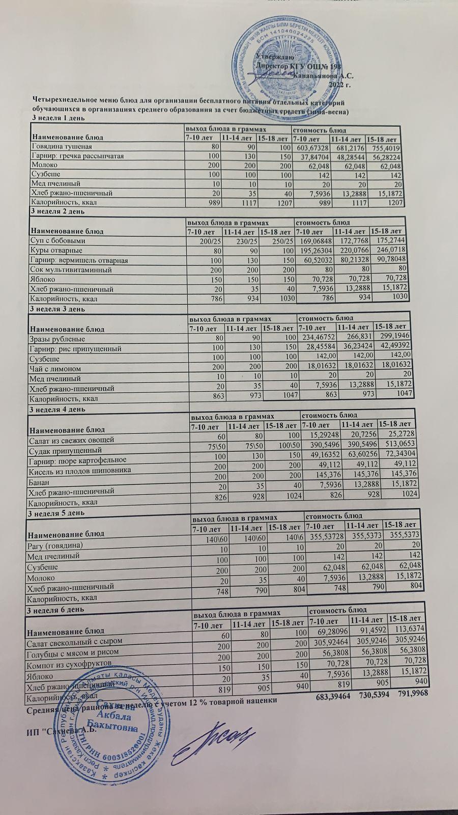 » Төрт апталық тегін ас мәзірі 2022 жылғы қыс-көктем