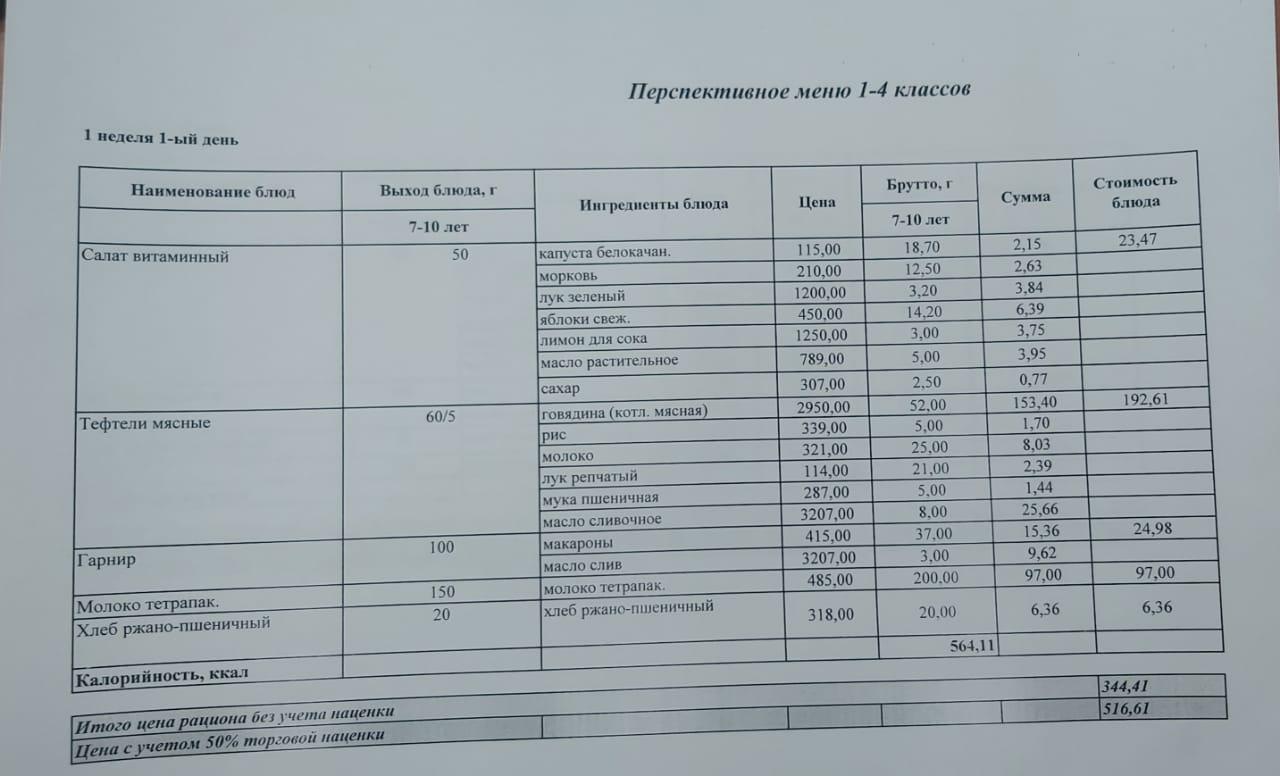 » 1-4 сыныптар үшін болашақ мәзір 2022 жыл