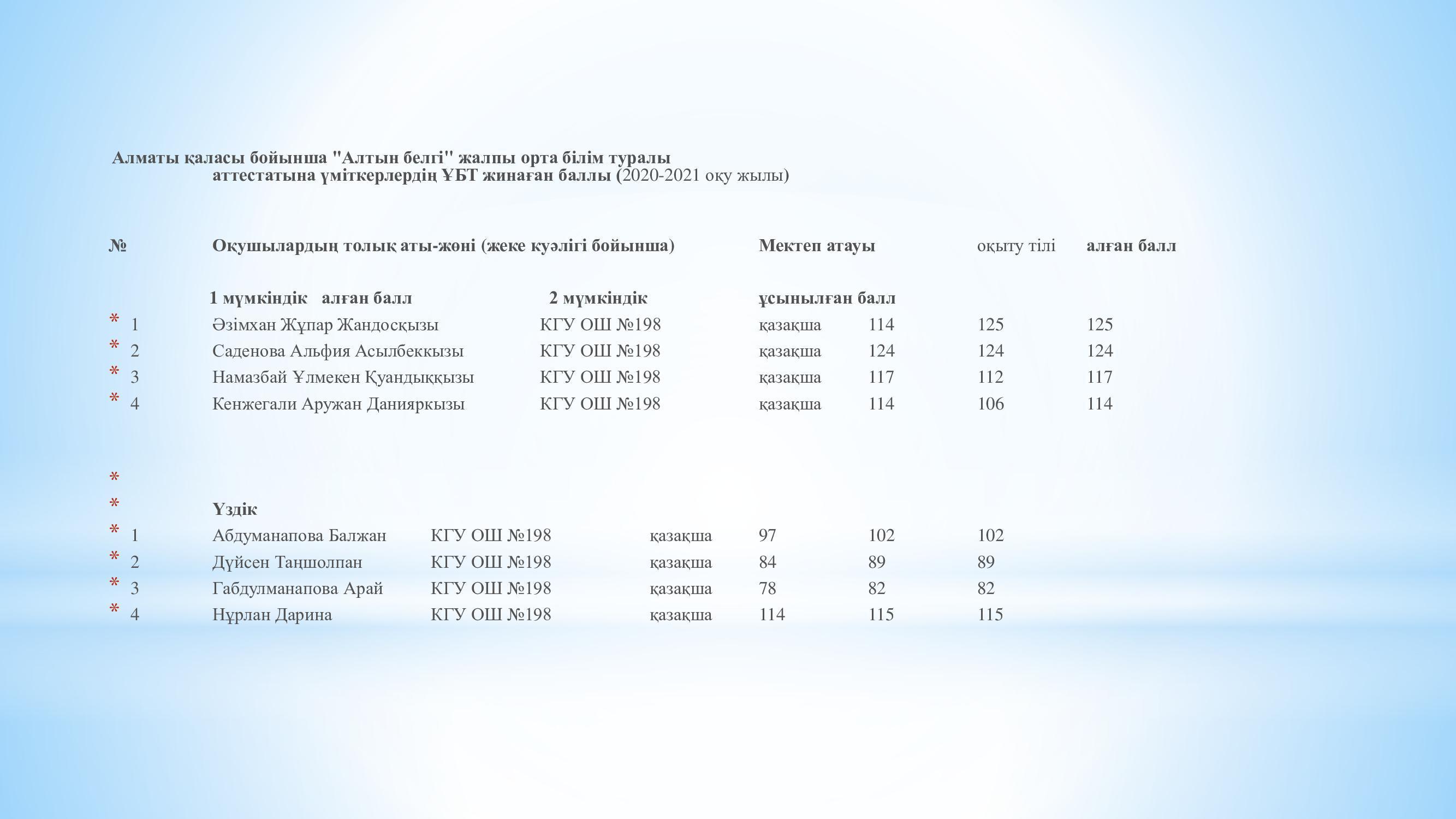 Алматы қаласы Білім басқармасының" №198 жалпы білім беретін мектебі " КММ